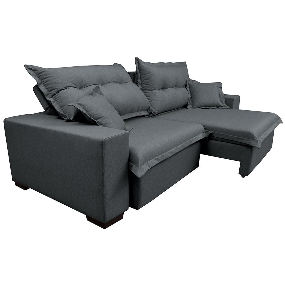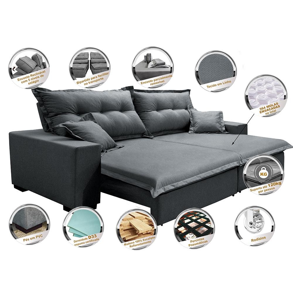 Sofá Retrátil e Reclinável com Molas Ensacadas Cama inBox Prime 3,12m Tecido Linho Cinza Escuro