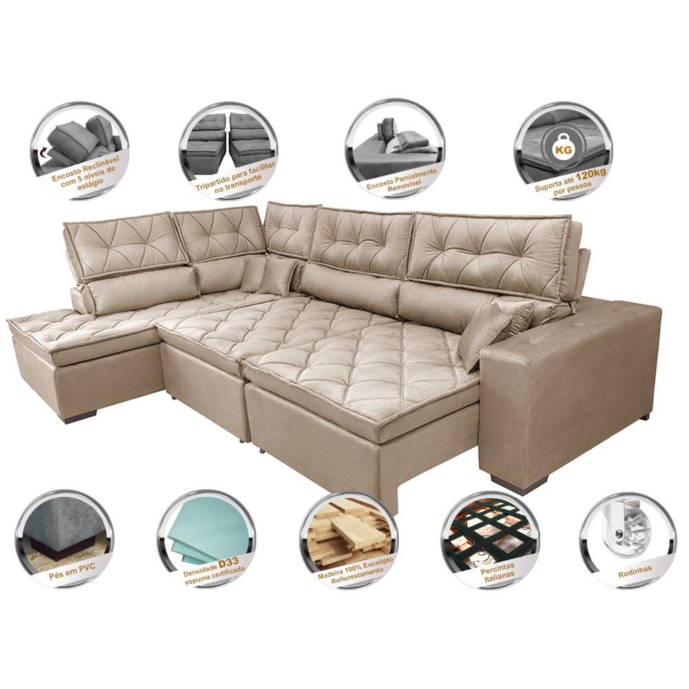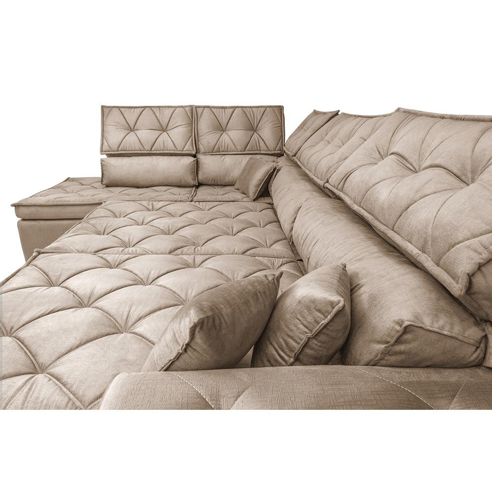 Sofá de Canto Retrátil e Reclinável Esquerdo 3,40x2,36m Molas Cama inBox Espanha Velusoft Bege