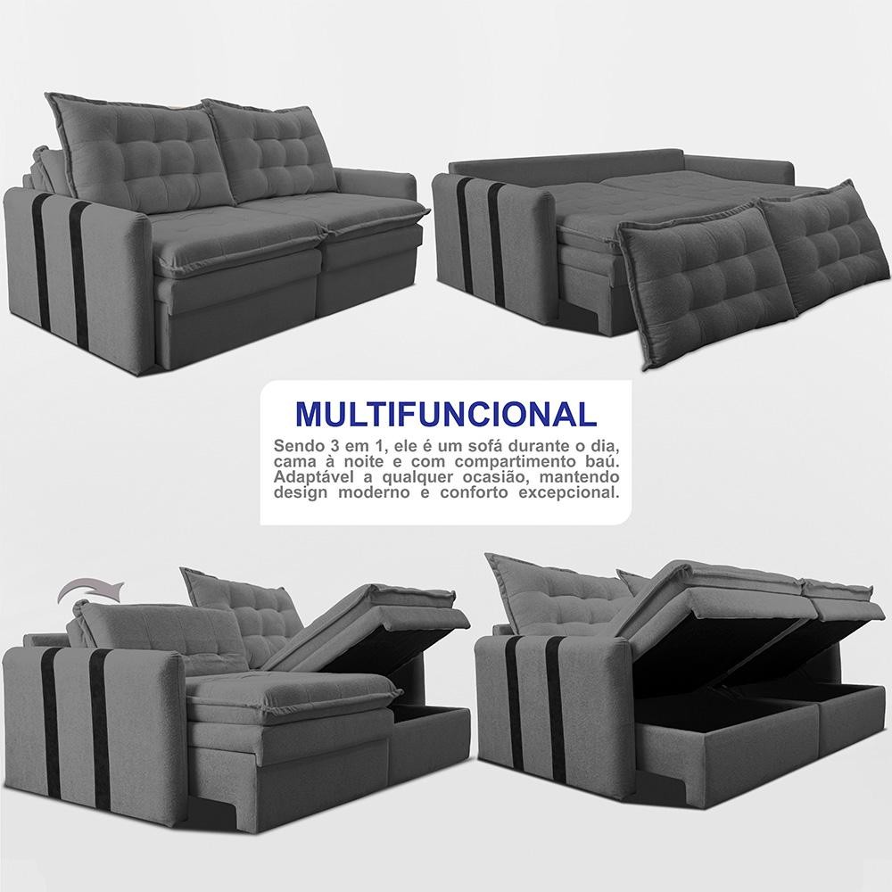 Sofá Baú Sem Caixa Retrátil 1,60m SoftGel Petit Boucle Cinza Escuro Cama inBox