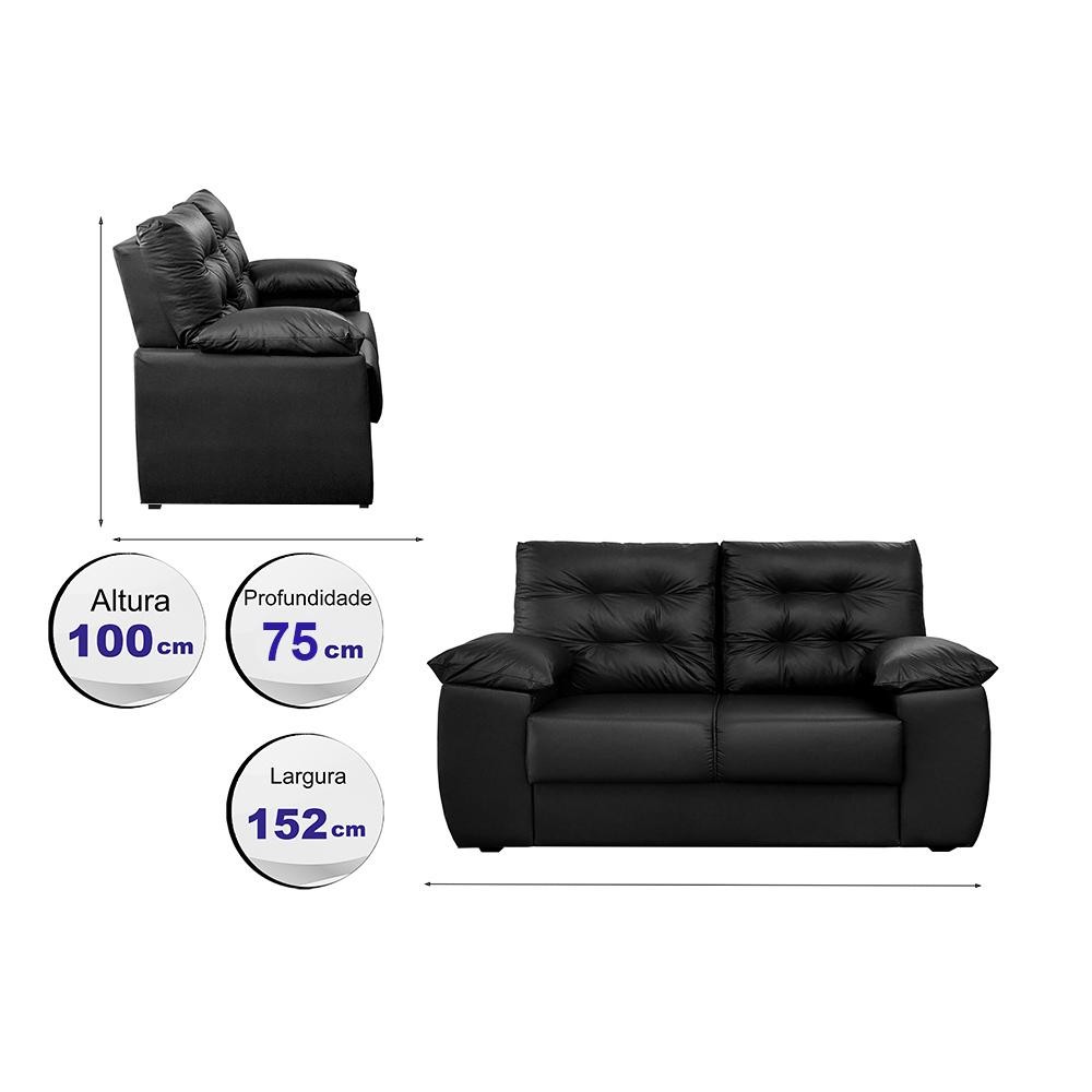 Sofá Luxemburgo 2 Lugares 1,52m Tecido Courino Preto