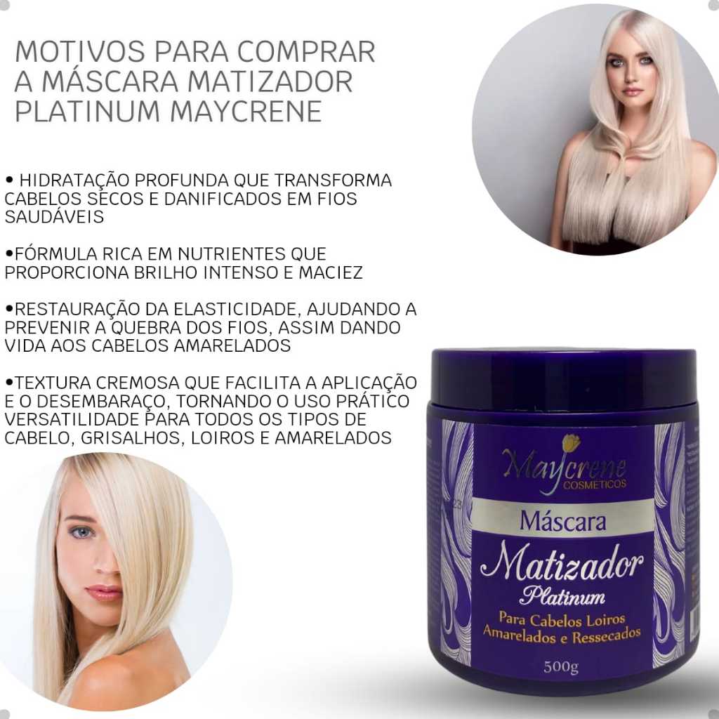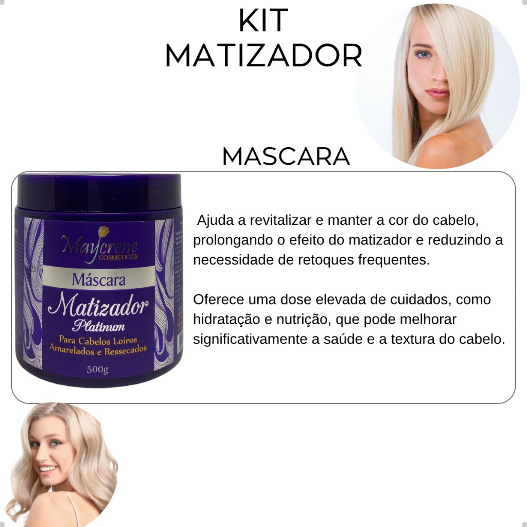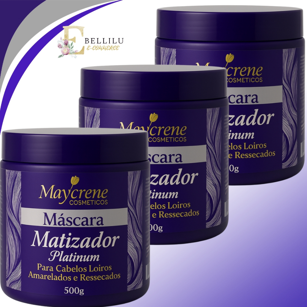 kit 3 Máscaras Profissional Platinum Blond Matizador Desamarelador 500ml Maycrene