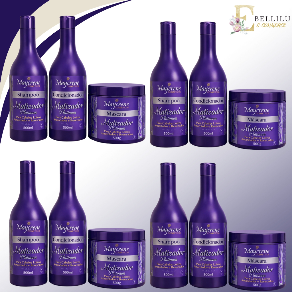 4 Kit Capilar Matizador Platinum - Shampoo + Mascara + Condicionador - Maycrene