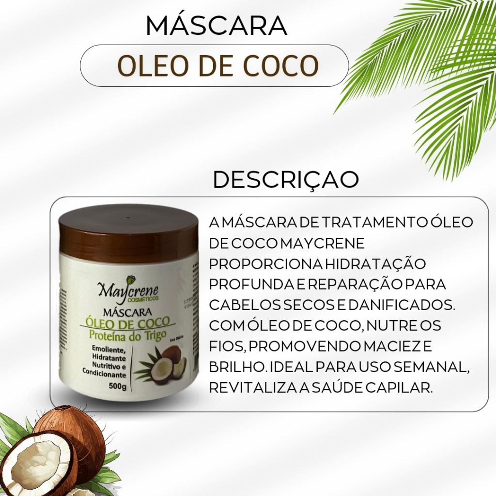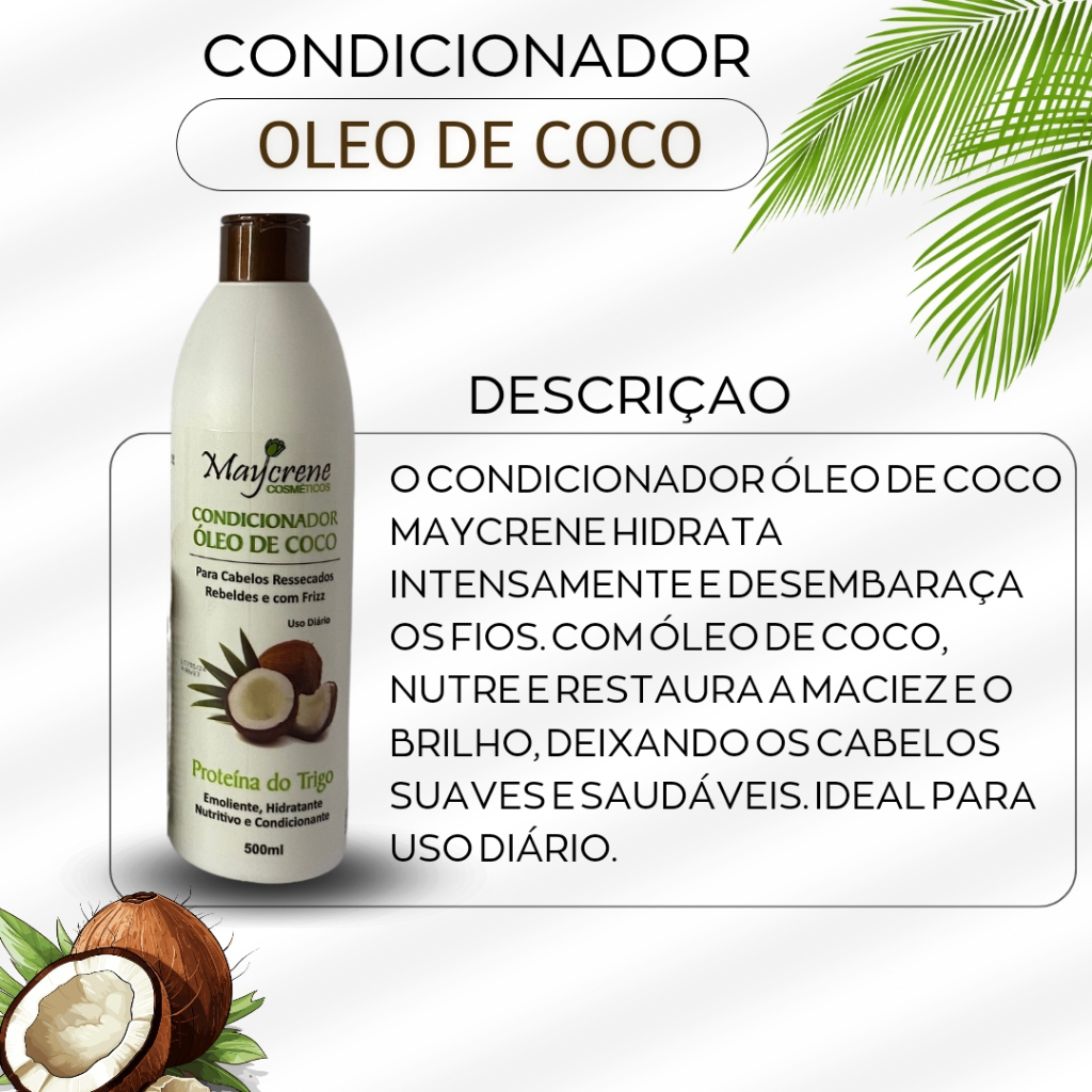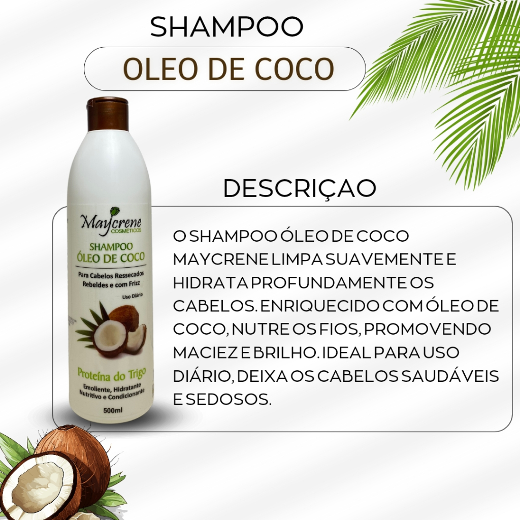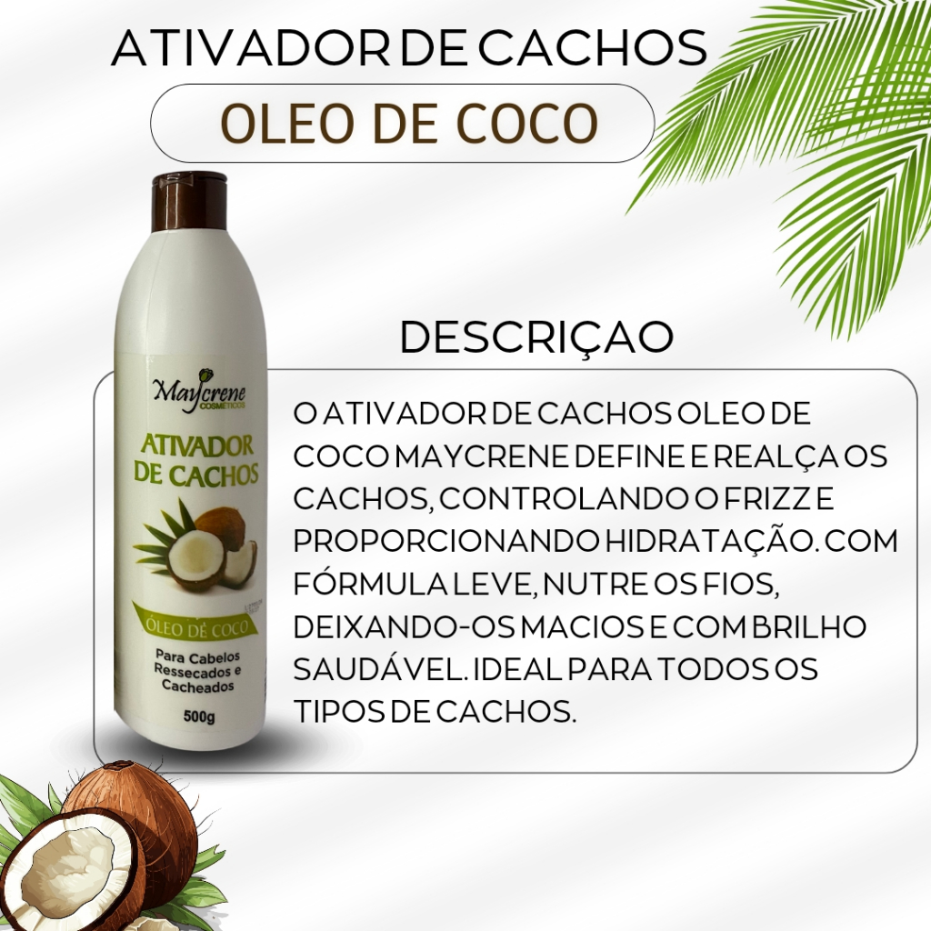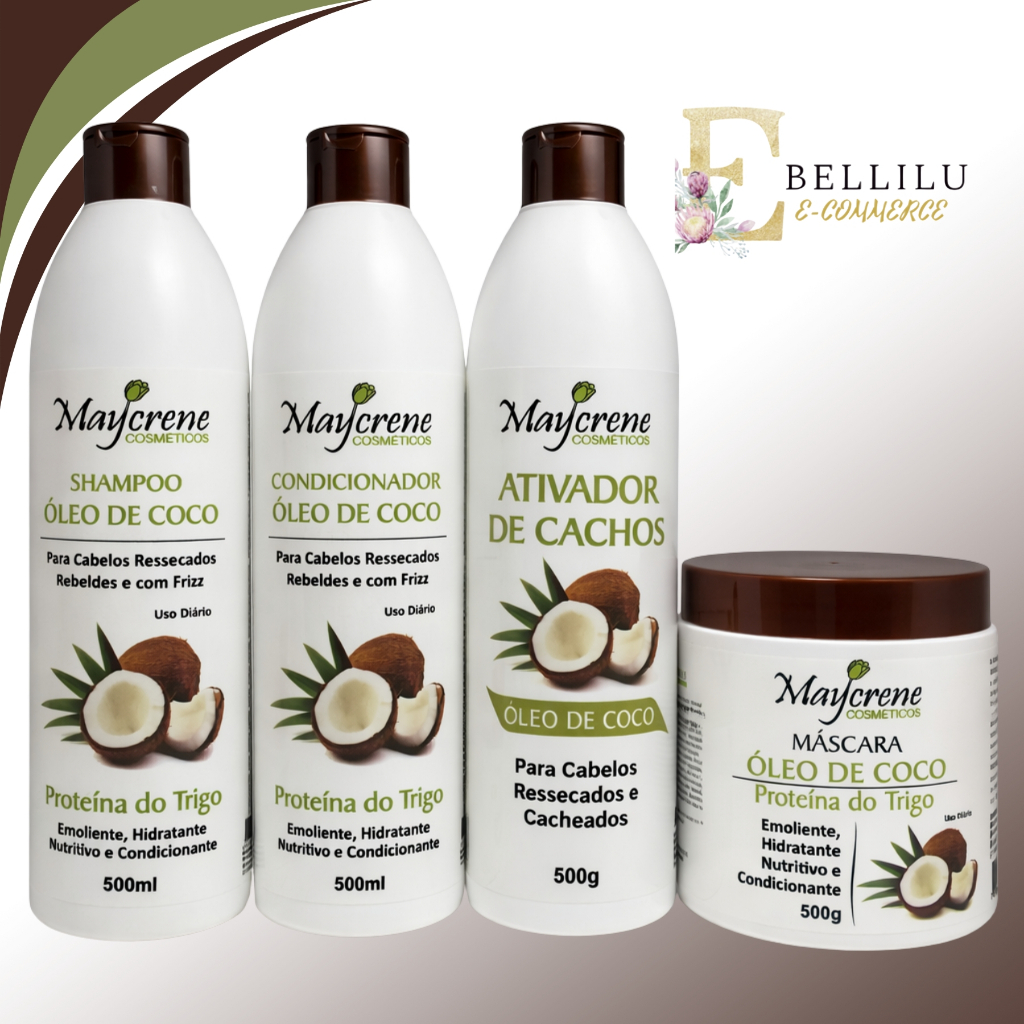 Kit Para Cabelos Cacheados Óleo de Coco Shampoo Condicionador Máscara e ativador 500ml Maycrene