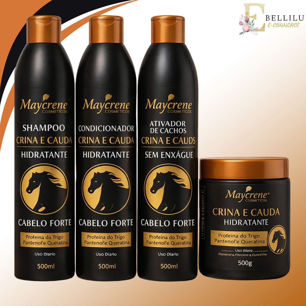 Kit Crina e Cauda Crescimento Capilar - Maycrene (Shamp, Cond, Máscara e Ativador De Cachos)