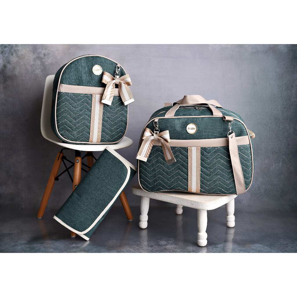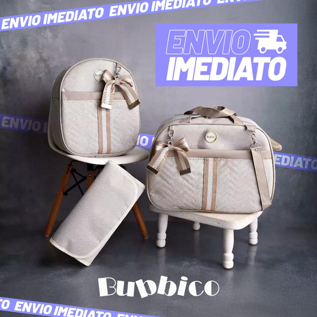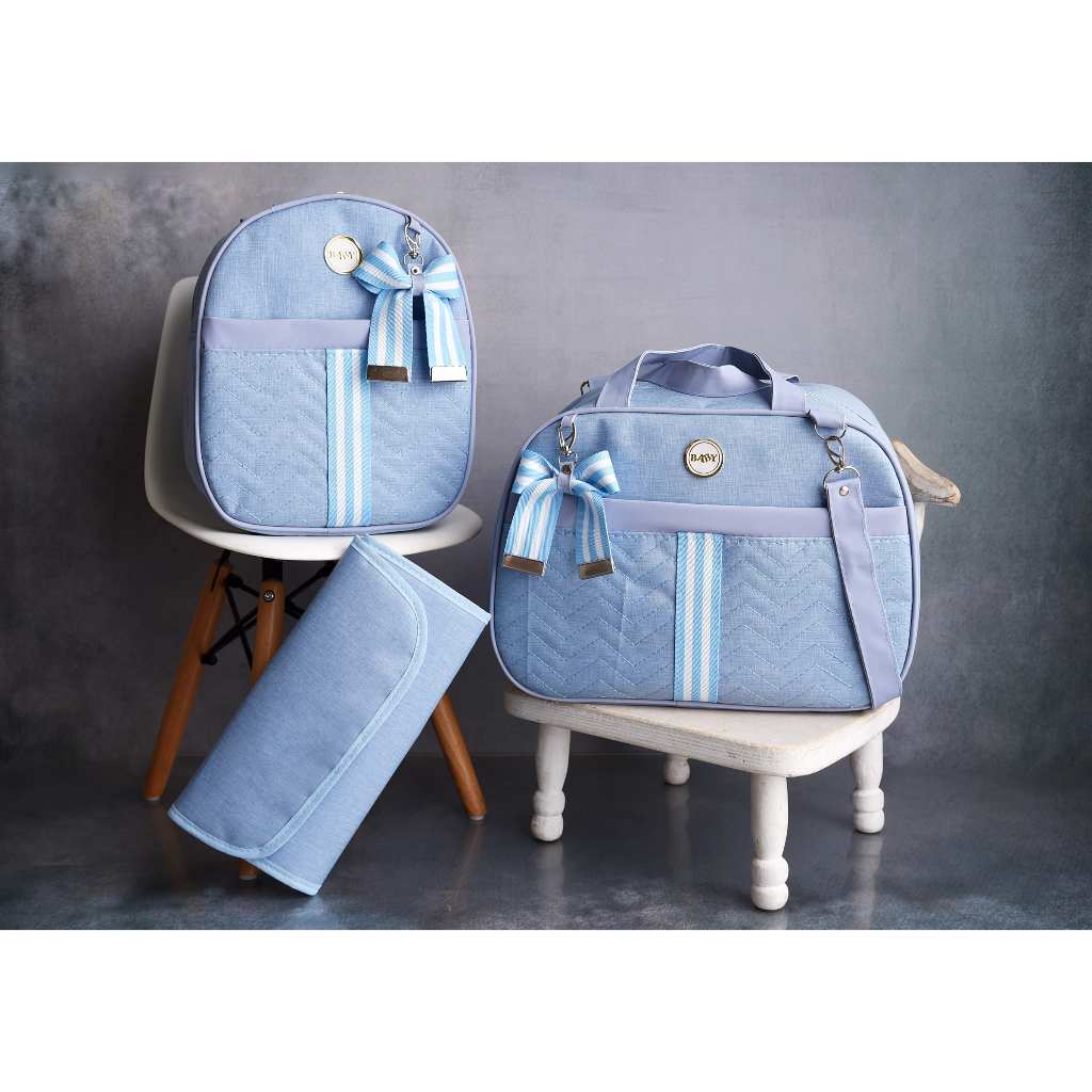 Kit Bolsa Maternidade De Linho com Faixa e Lacinho 3 peças Térmica e Impermeável BUBBICO