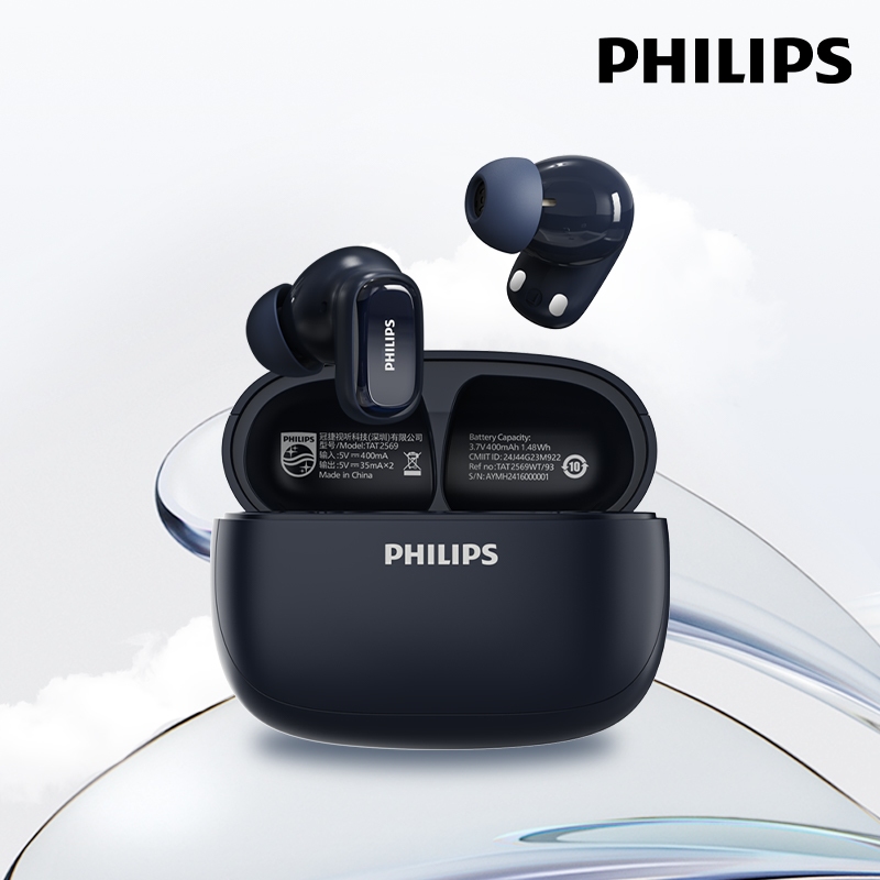 PHILIPS TAT2569 Fones De Ouvido Bluetooth 5.4 AI Redução De Ruído Inteligente Chamada Qualidade De Som Sem Perdas Bateri