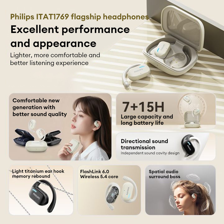 Fones De Ouvido PHILIPS TAT1769 Bluetooth 5.4 IPX5 À Prova De Suor Música/Jogo Modo Duplolow Latência 0.06s