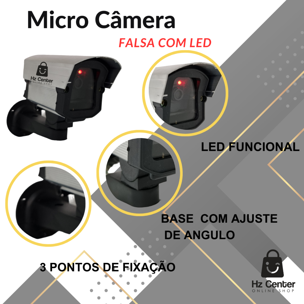 Kit 4 Micro Câmeras Falsas Bivolt Com Led + 04 Placas Ambiente Monitorado por Câmeras