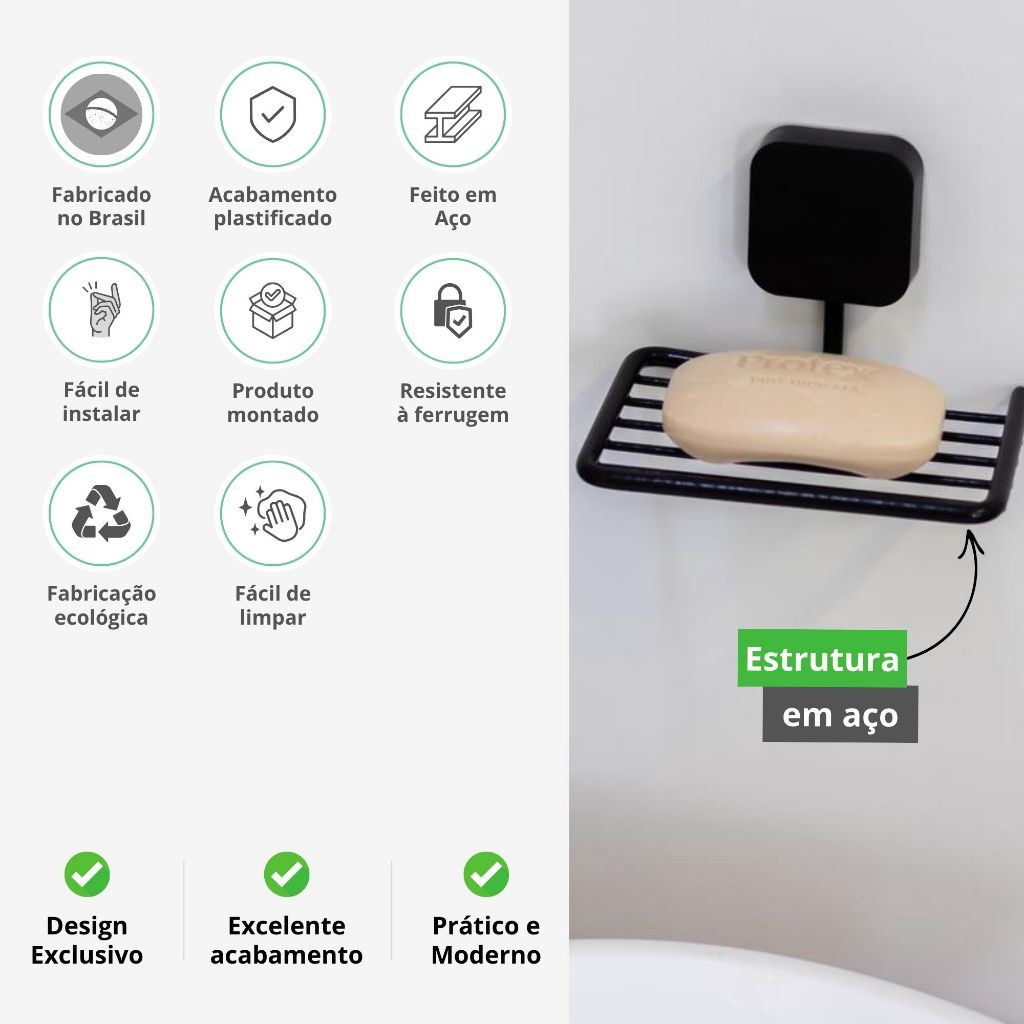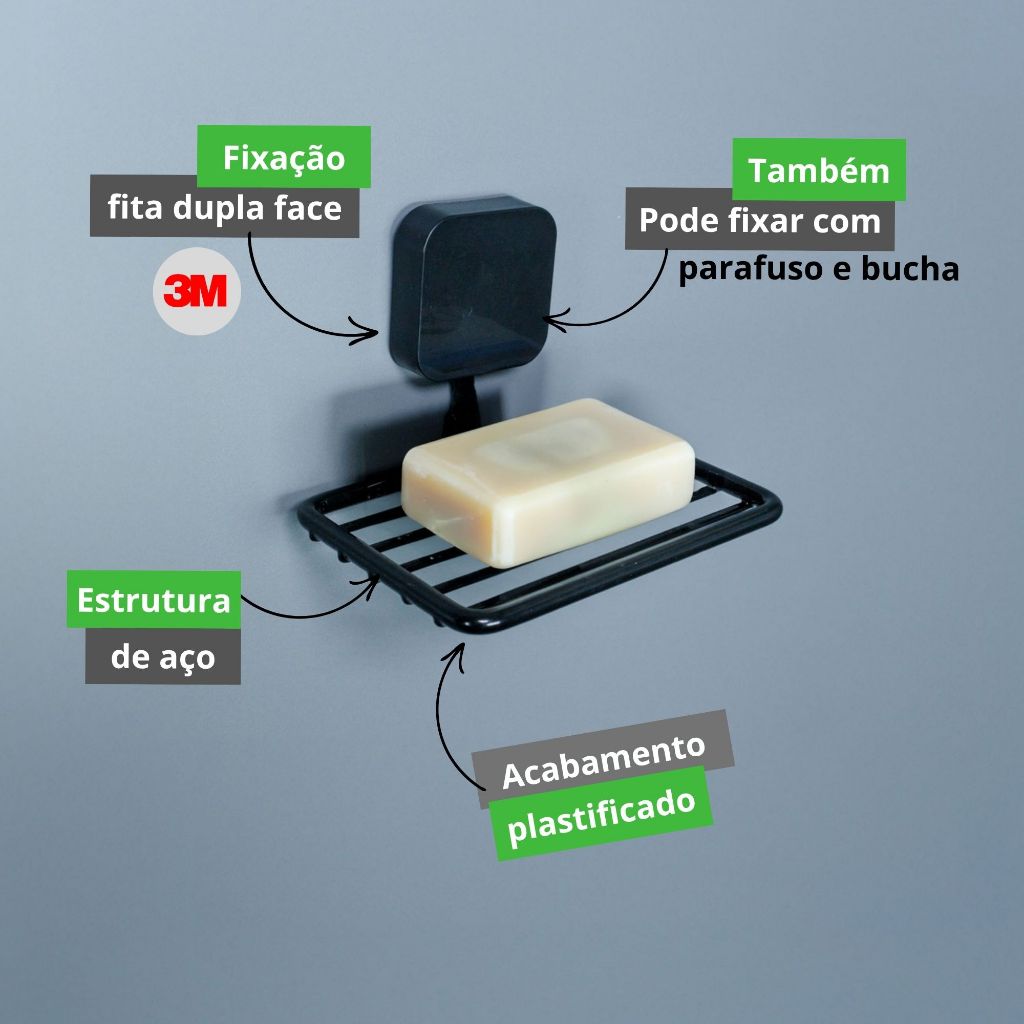 Suporte Organizador de Sabonete Parede Fita Dupla Face Metaltru