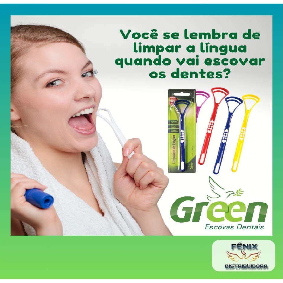 Raspador/higienizador/escova para limpeza de lingua linha profissional green dental.