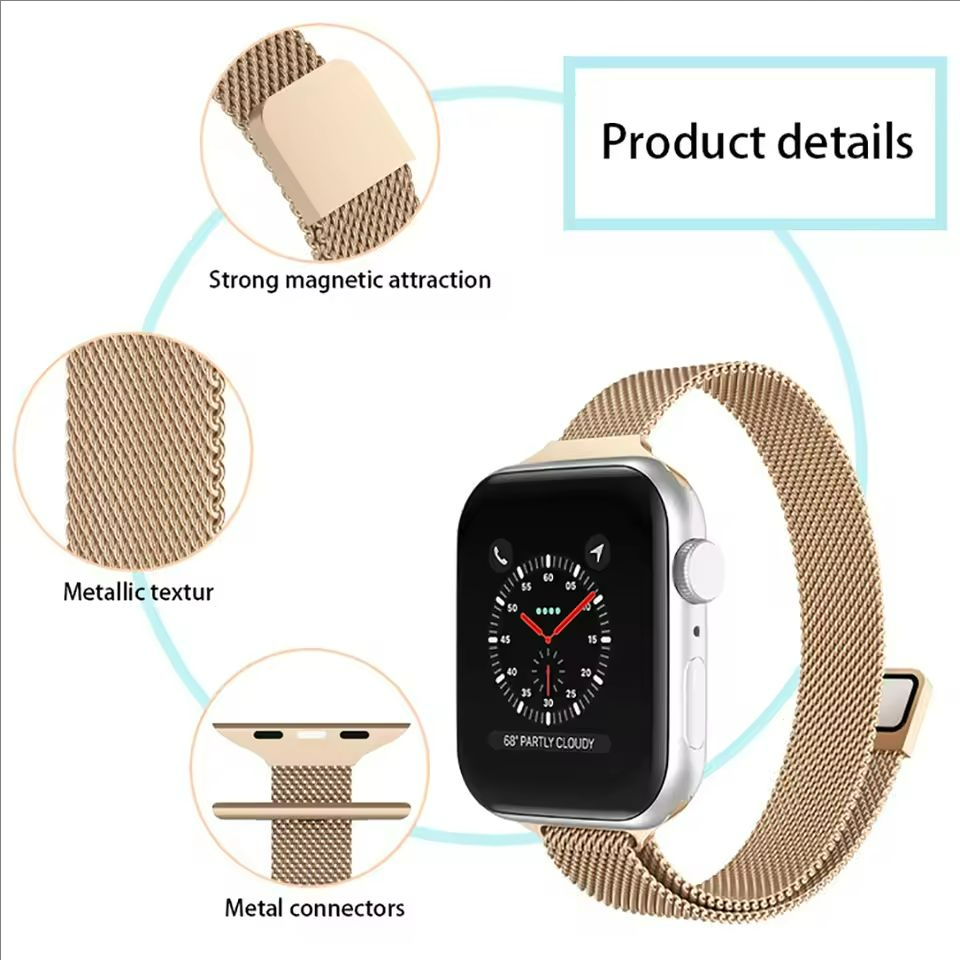 Pulseira De Metal Milanesa Fina Para iWatch Série 11/10/9/8/7/6/5/4/3/SE Ultra 2 49mm 46mm 44mm 45mm 49mm 41mm 42 40 38