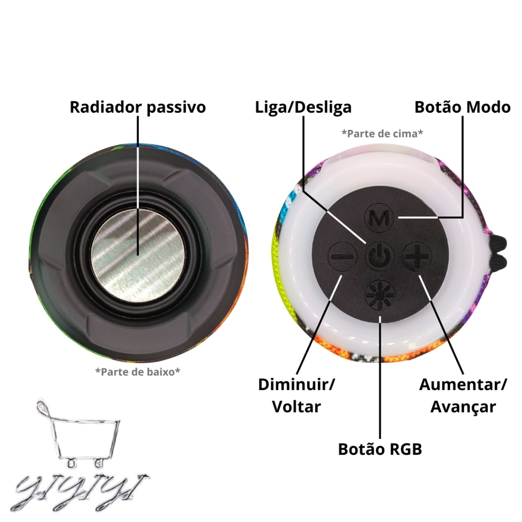 Caixa De Som TWS mini Speaker crânio Bluetooth RGB Portátil 10W usb/aux