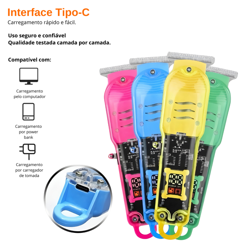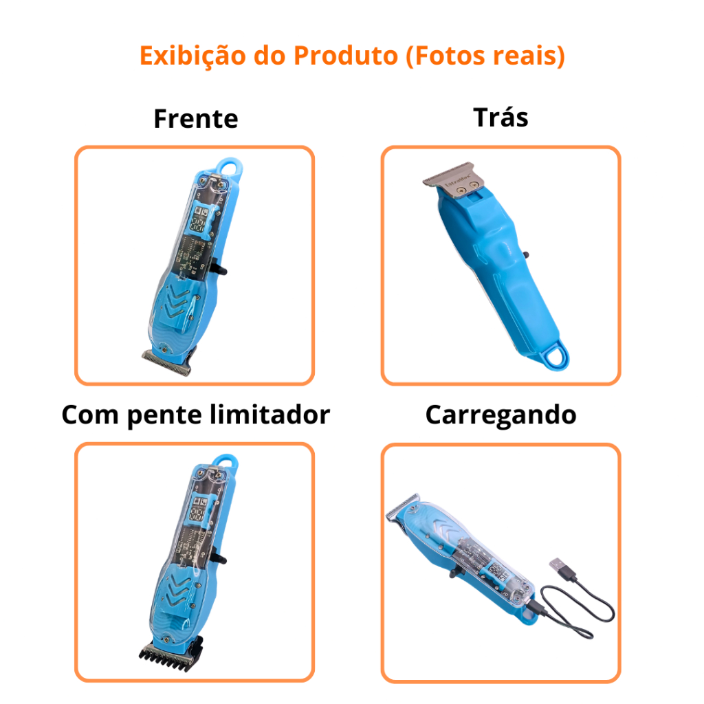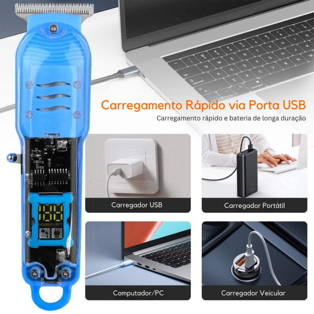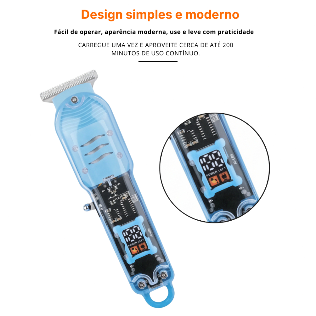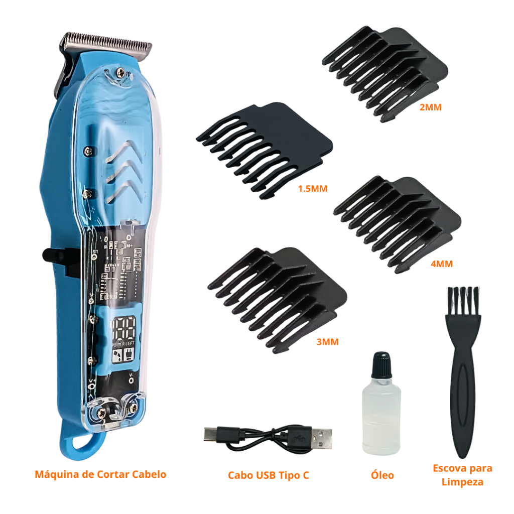 Máquina De Cortar Cabelo Profissional Smart Lcd Barbeador Elétrico Transparente Sem Fio Para Homens