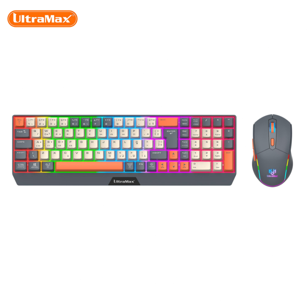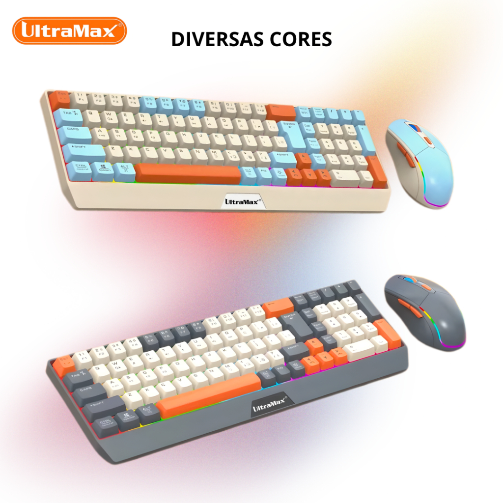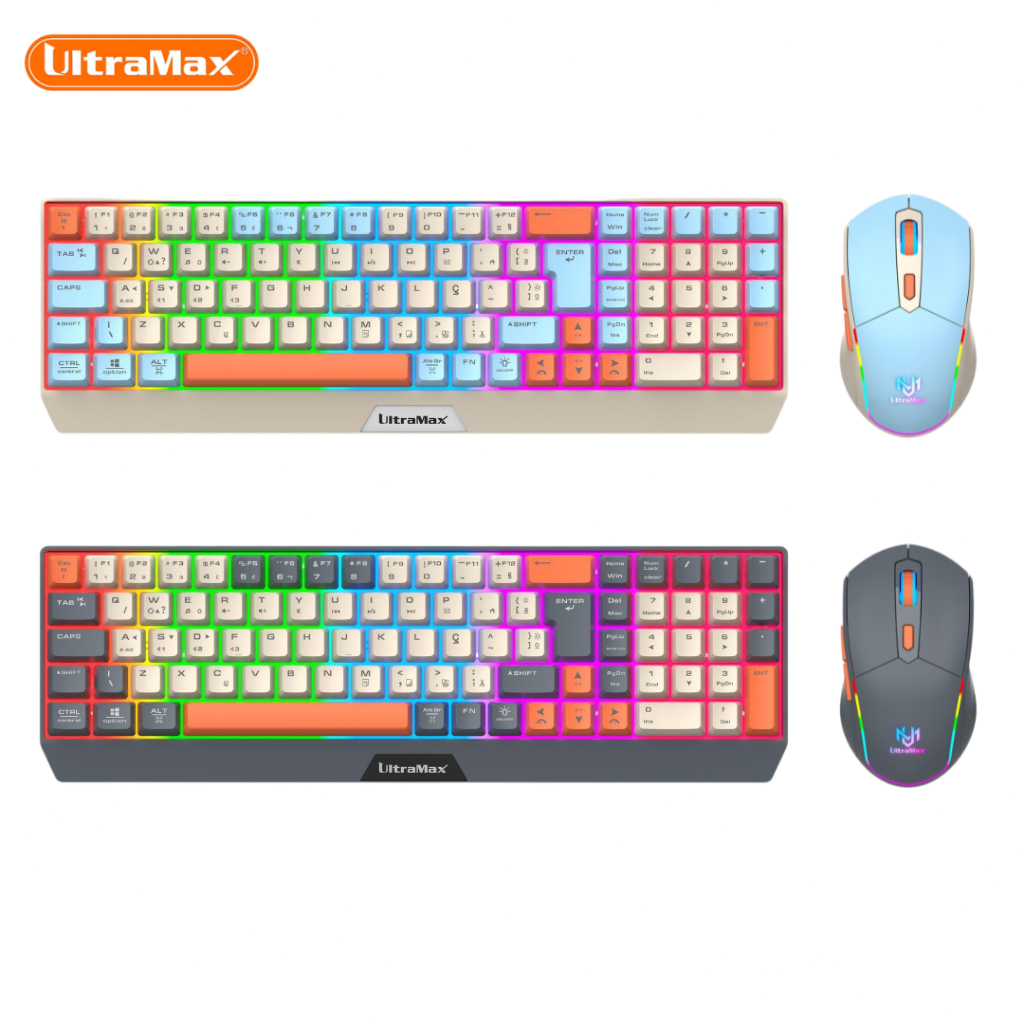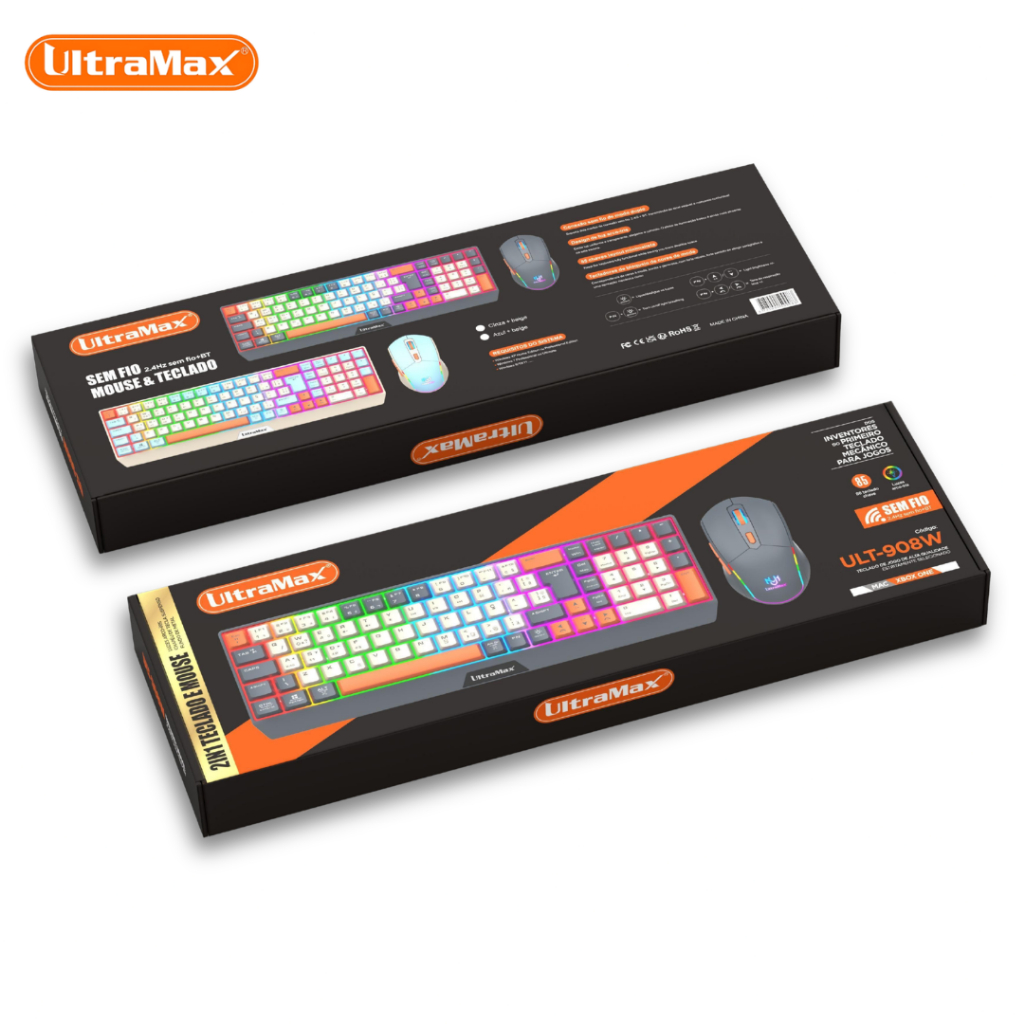 Kit Teclado e Mouse Sem Fio Gamer UltraMax ULT-908W Bluetooth + 2.4GHz RGB Recarregável ABNT2.