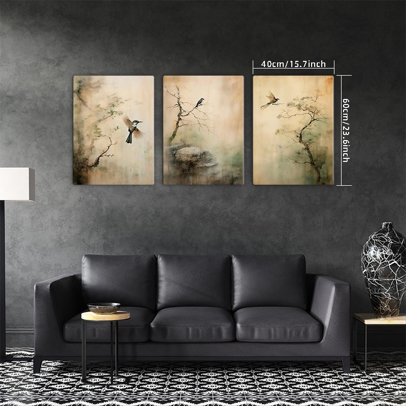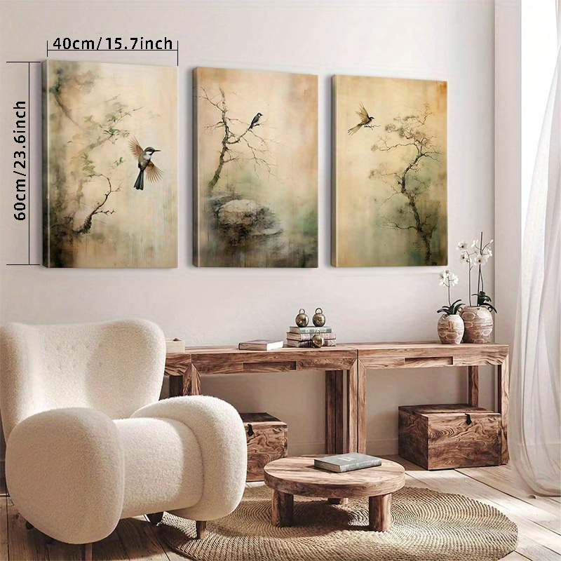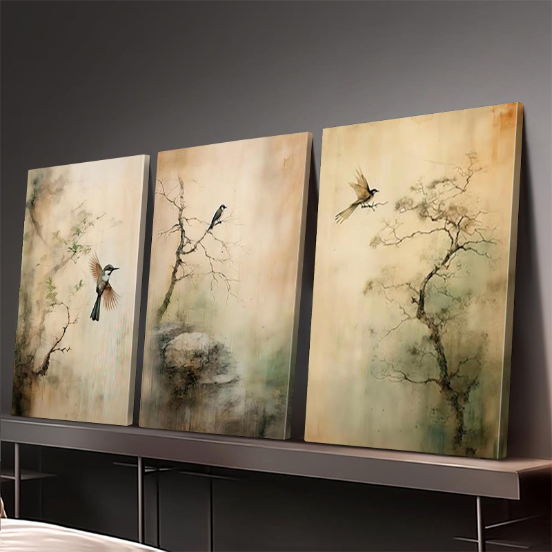 Quadros Decorativo Japandi Paisagem 3 Peças – Arte Minimalista para Sala, Quarto e Decoração Natural