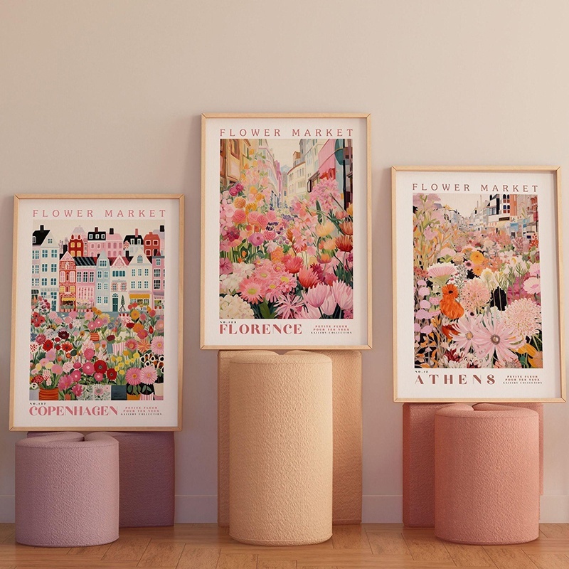 Quadros Decorativos Florais Mercado de Flores – Arte em Vinil MDF Rosa e Pêssego Moderna