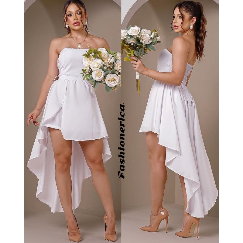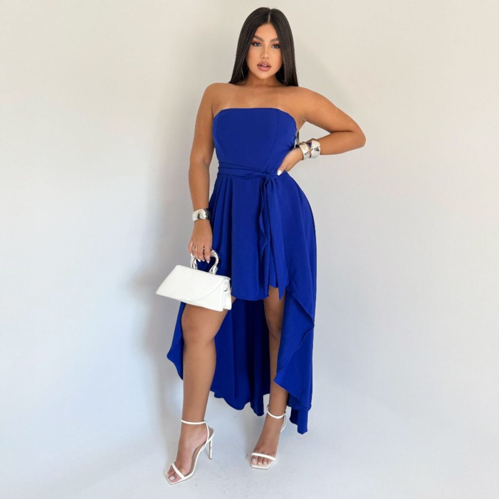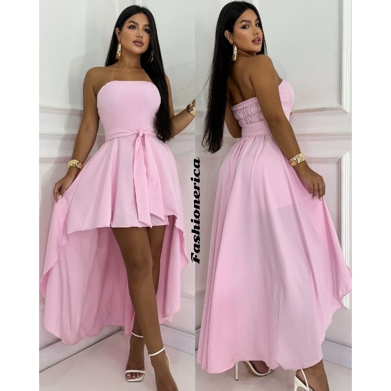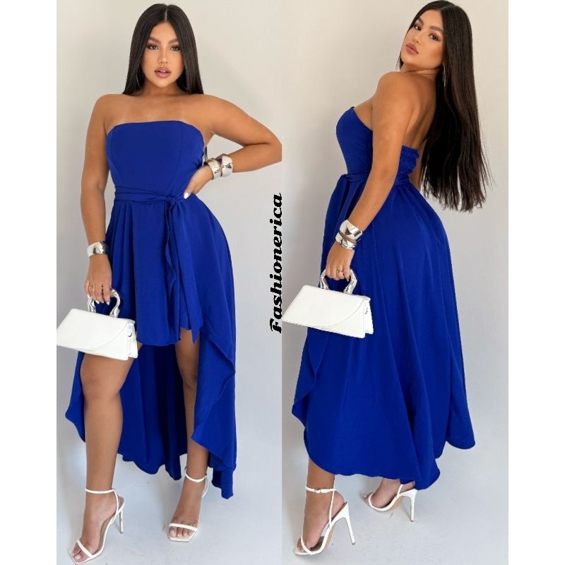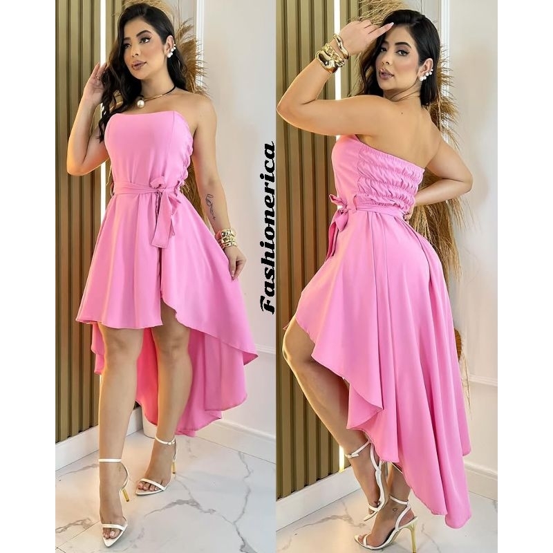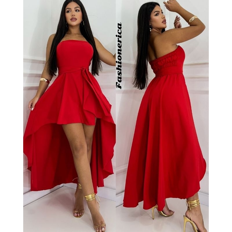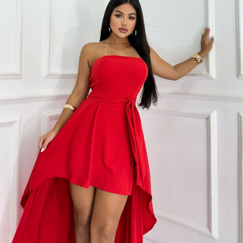 Vestido Tomara que Caia Assimétrico Mullet com Faixa – Festa Elegante