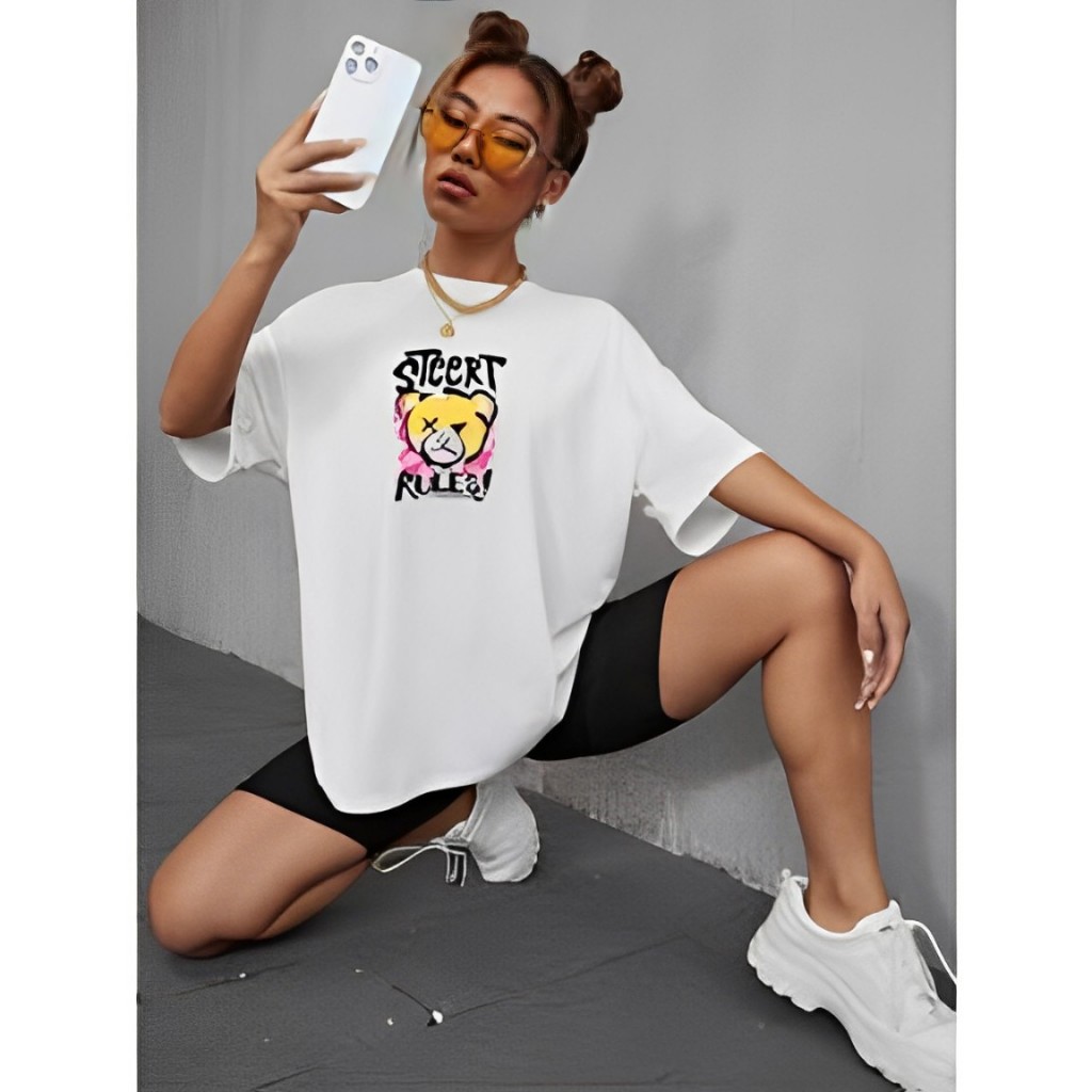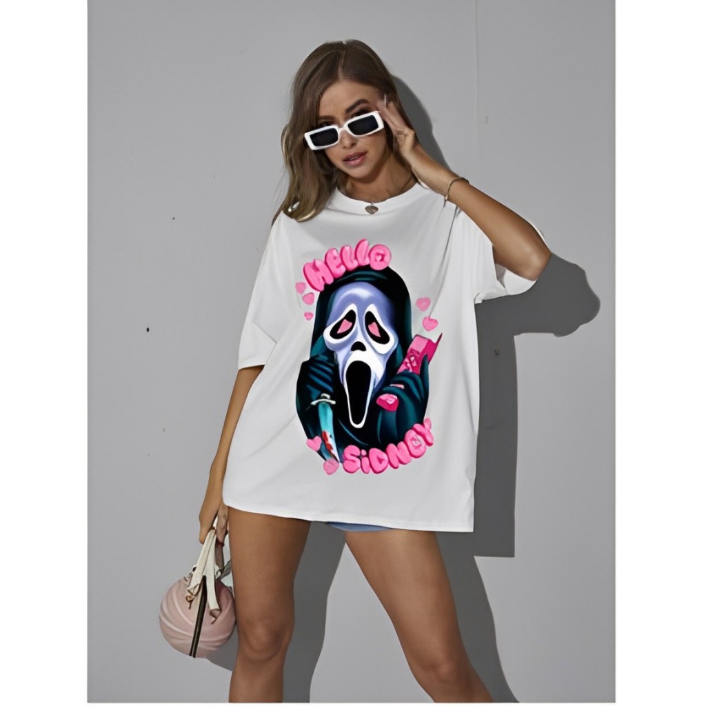Camisa Feminina Estampada Ocasional Branco T Shirt Desenho Grafico Estampado