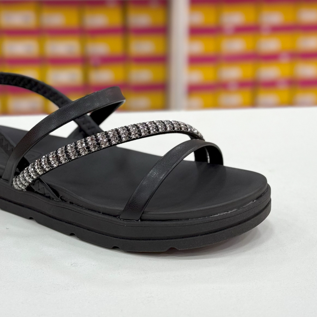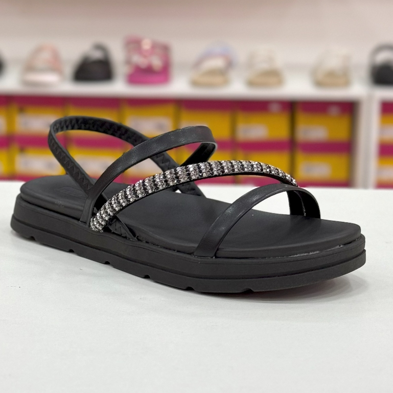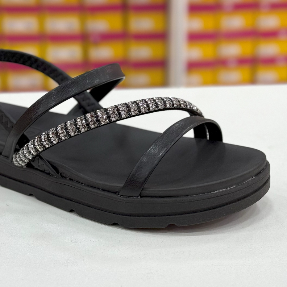 Sandália Moleca Feminina Rasteira Preta com Strass Conforto Ajustável 34 ao 39