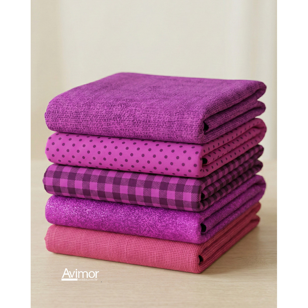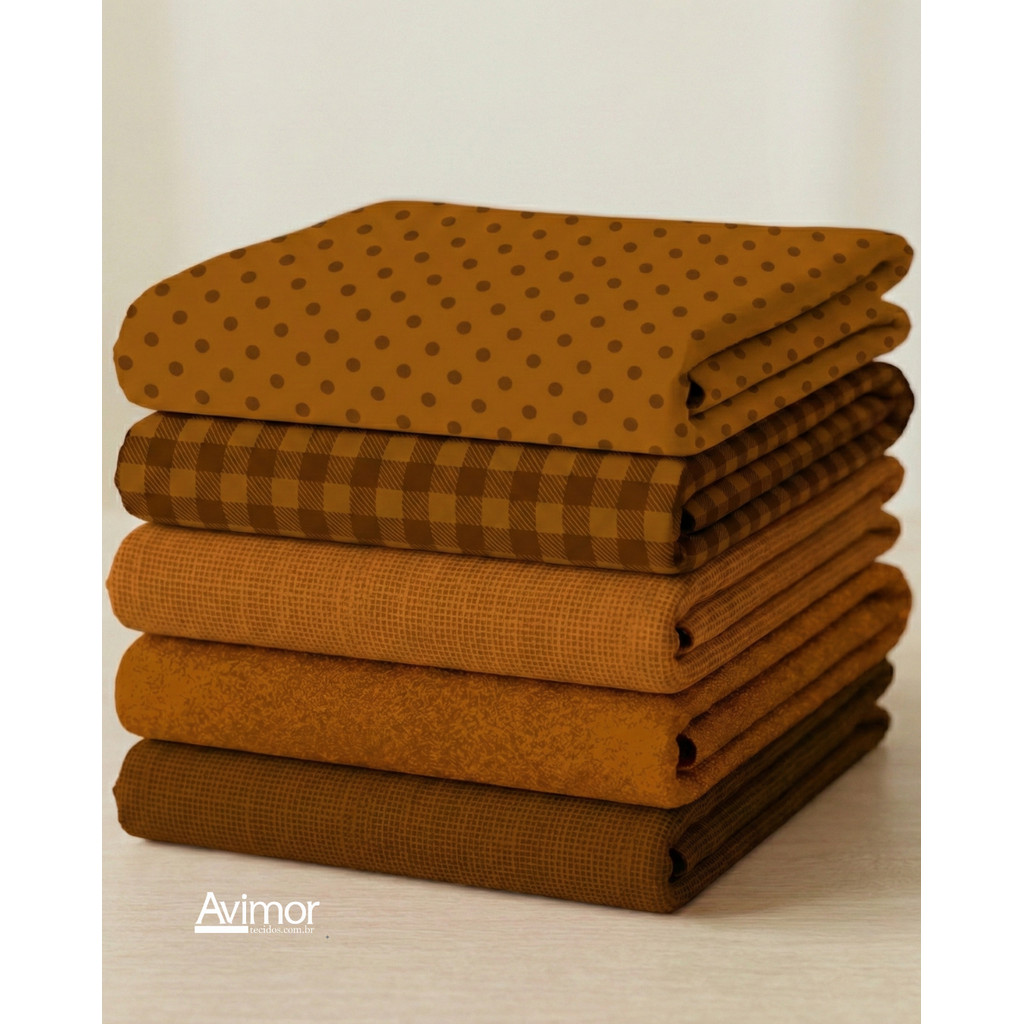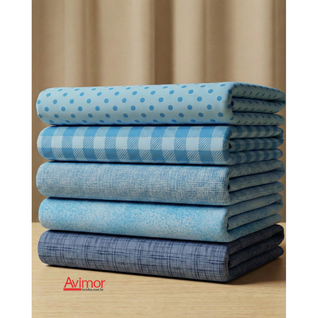 Kit 5 Tecidos Tricoline Algodao Composê Colorido Costura Artesanato Macio Alta Qualidade KT060