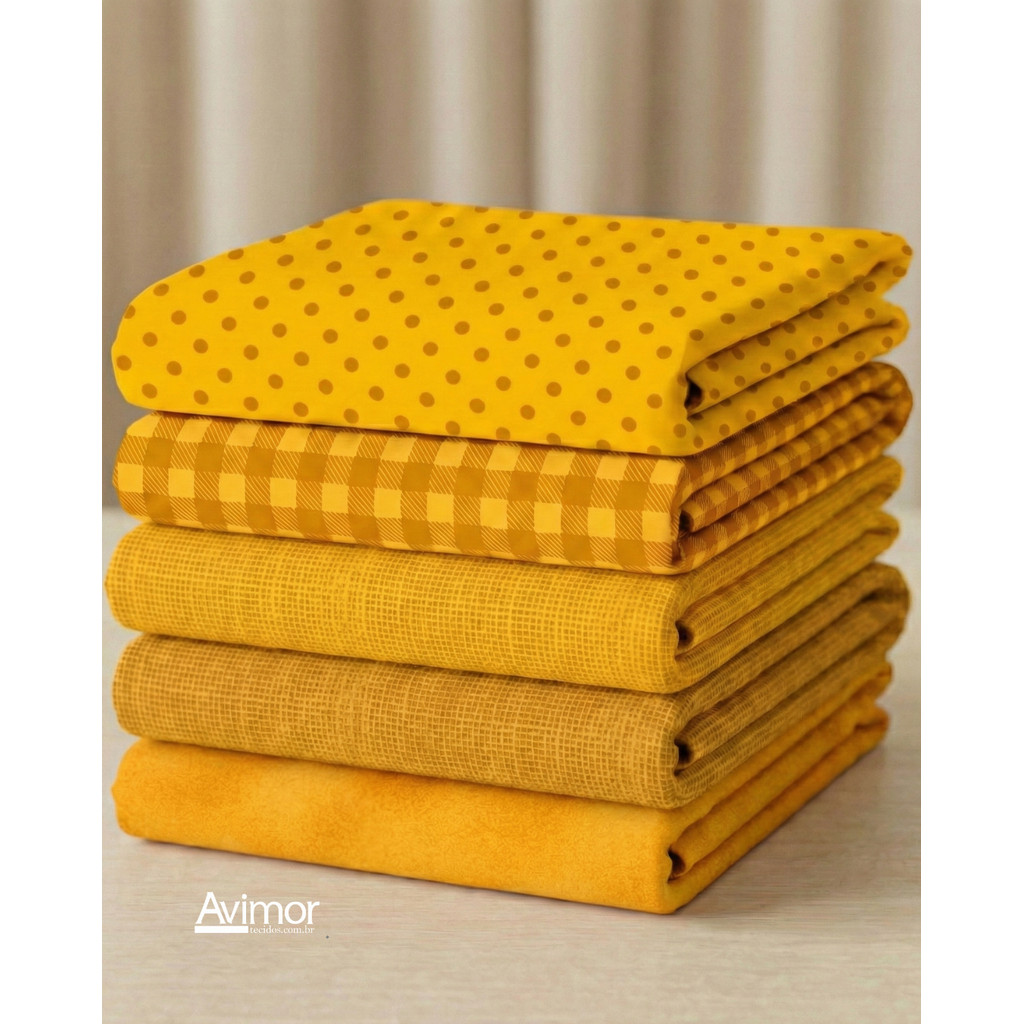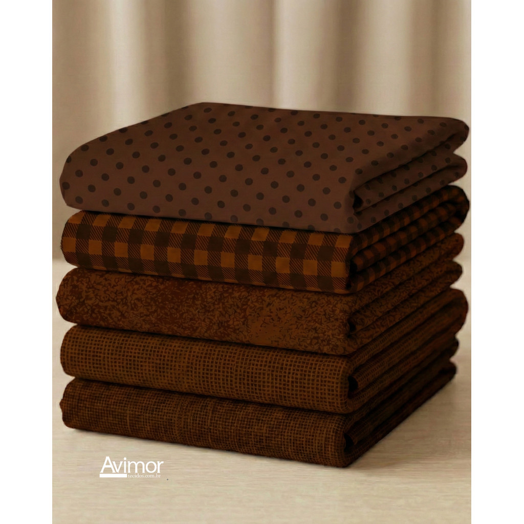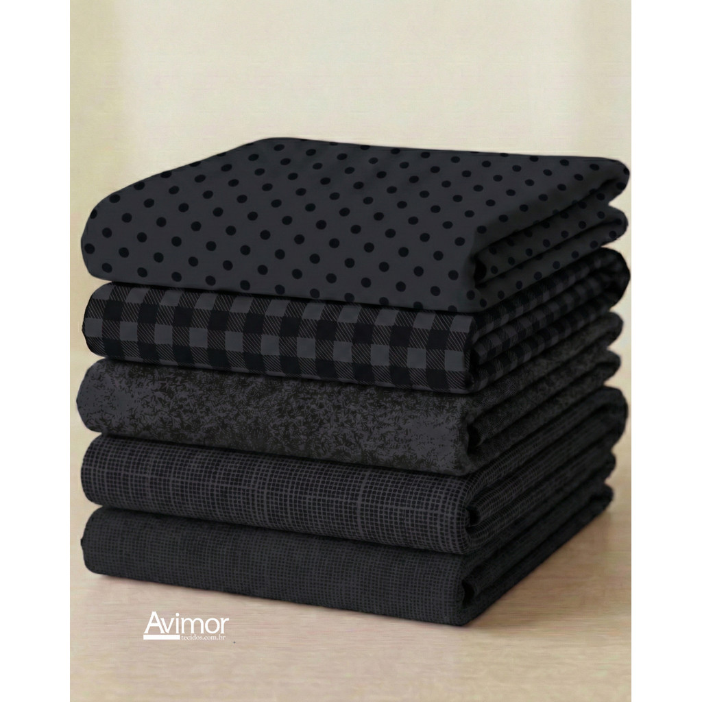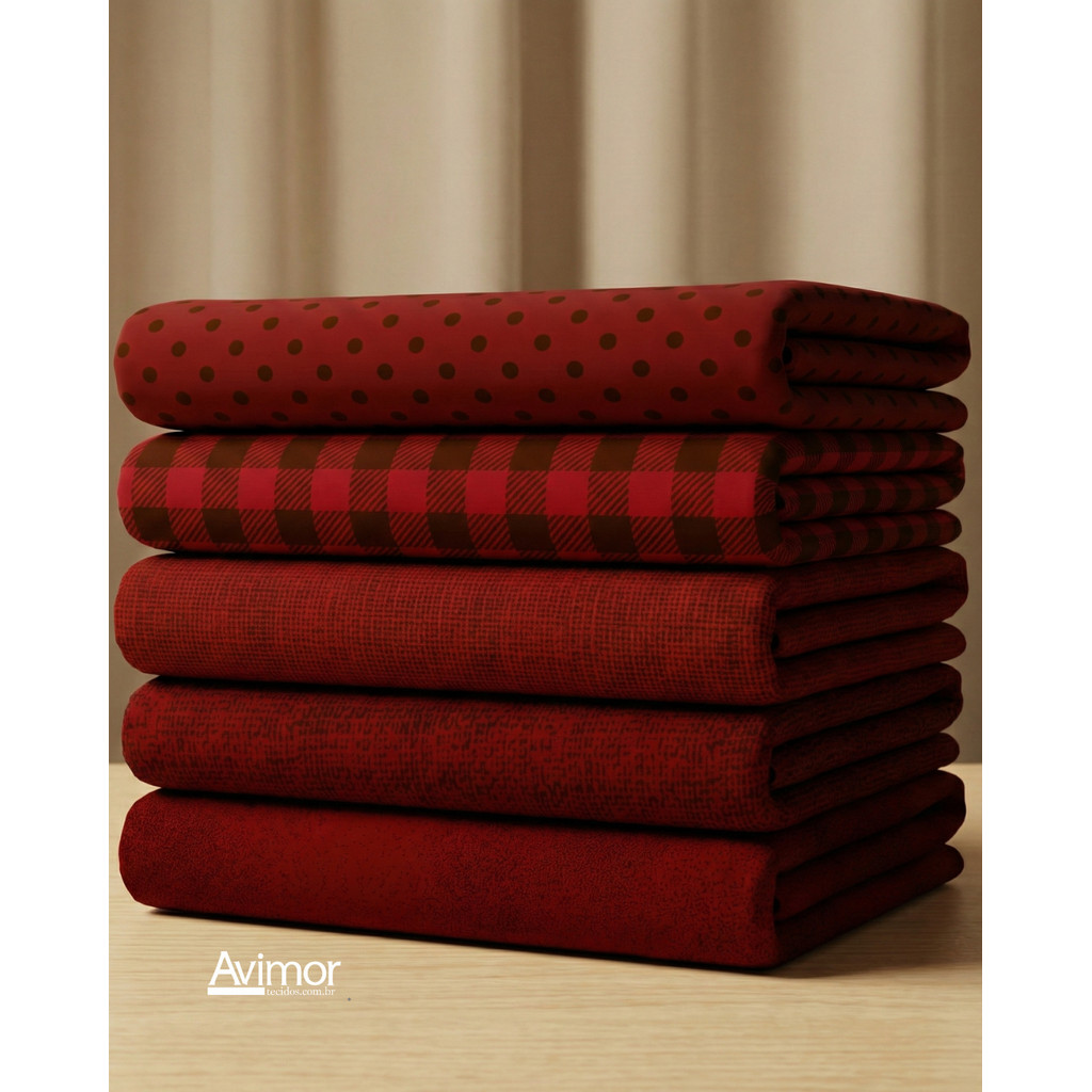 Kit 5 Tecidos Tricoline Algodao Composê Colorido Costura Artesanato Macio Alta Qualidade KT060