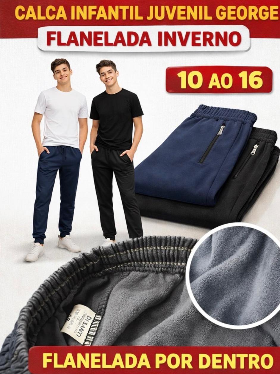 Calça Jogger Infantil Juvenil Flanelada Masculina 10 ao 16 com Bolso de Zíper