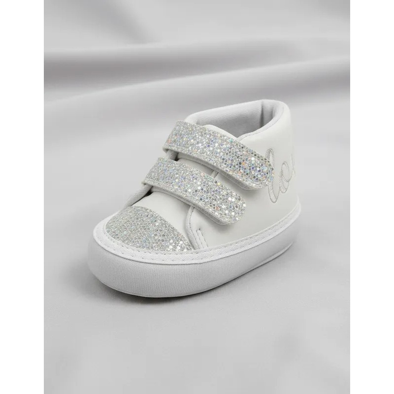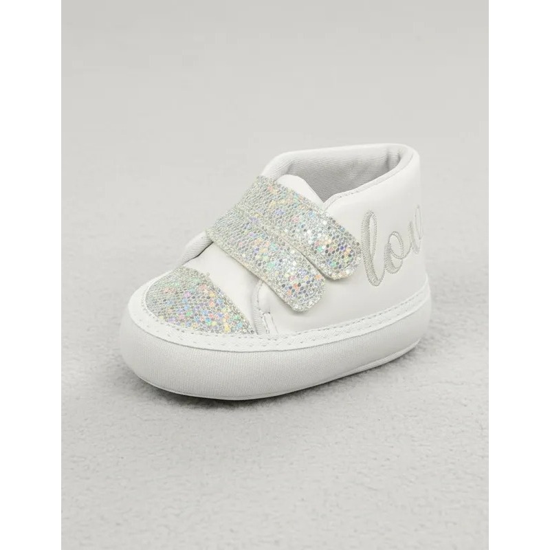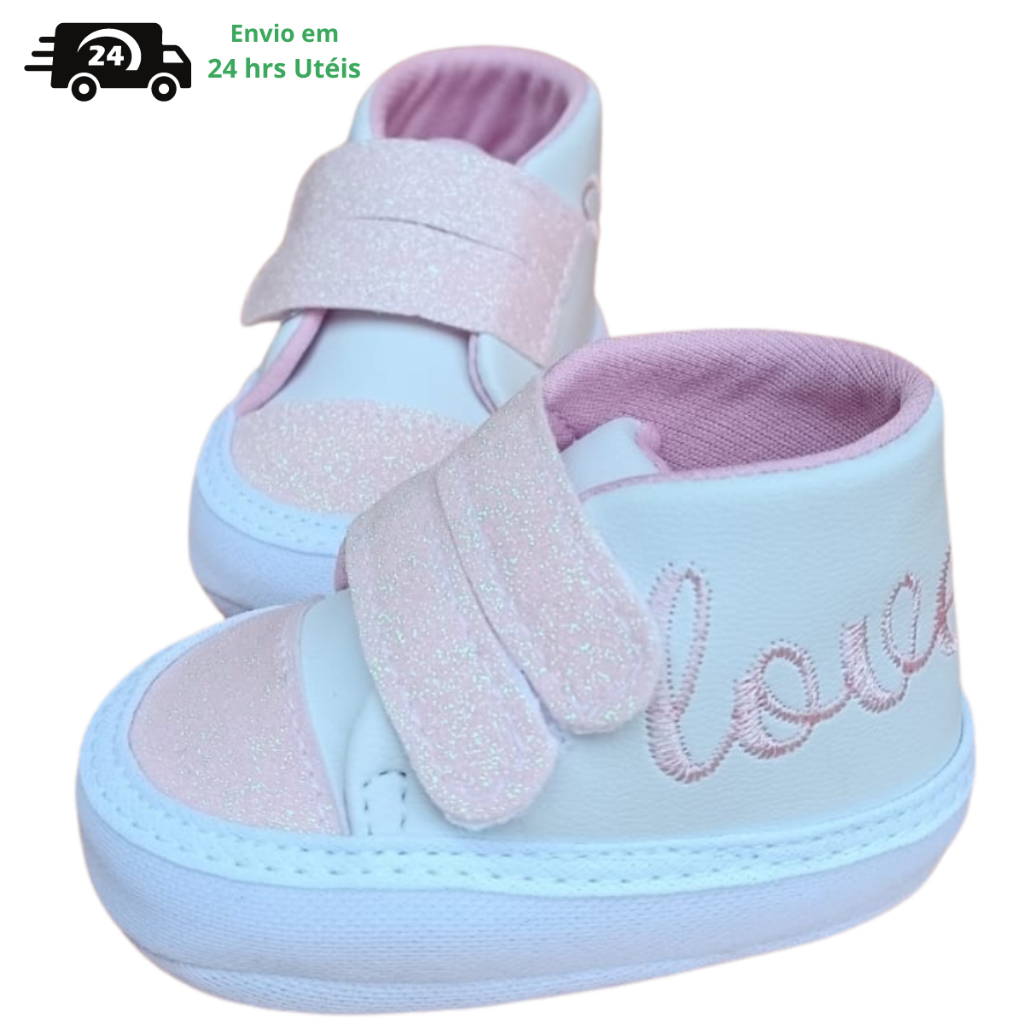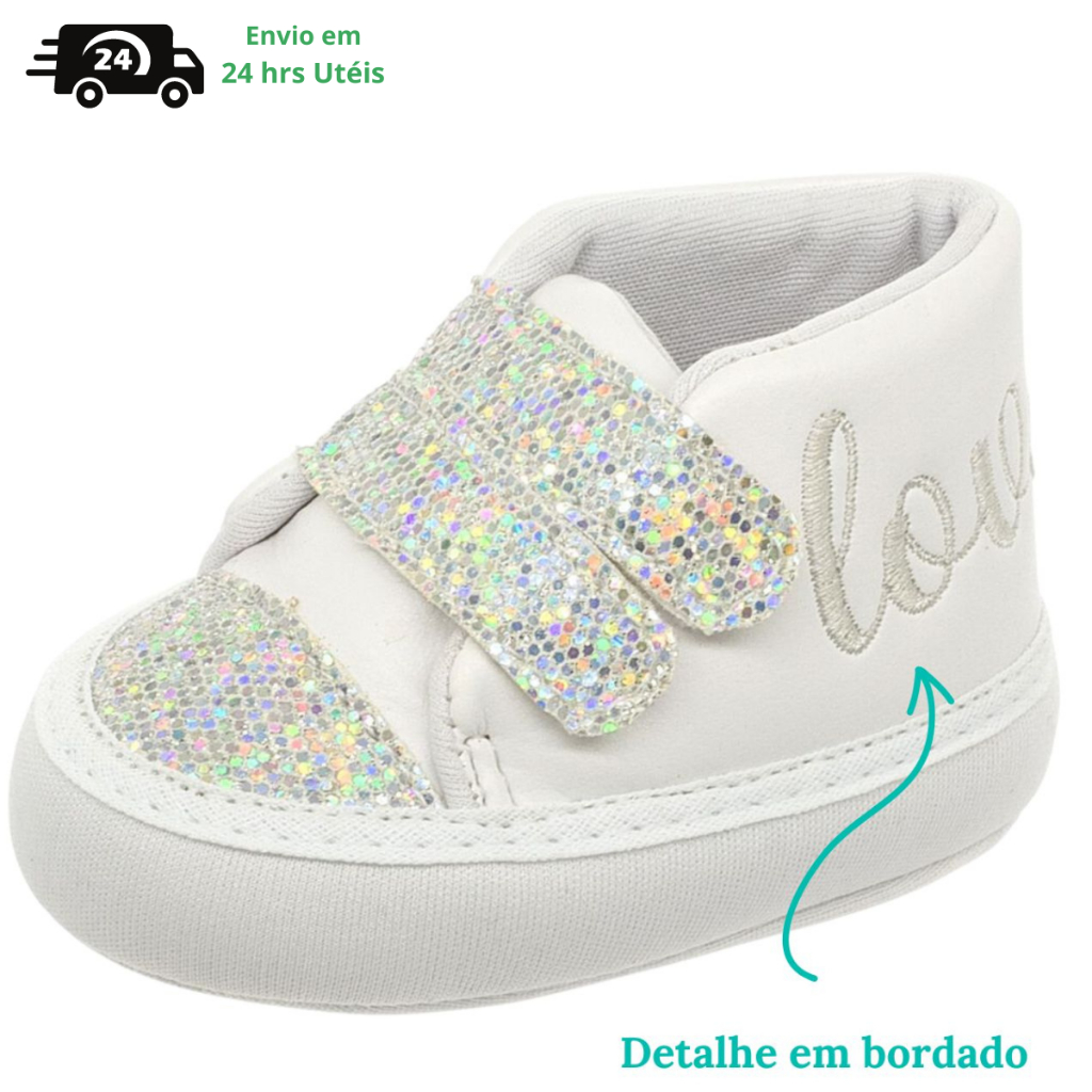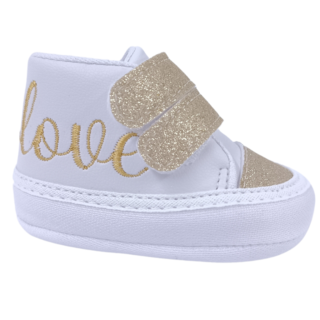 Sapatinho de Bebê Menina Lindo e Confortável Com Bordado Love e Detalhe Glitter