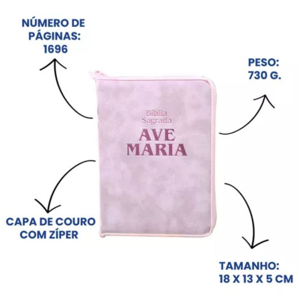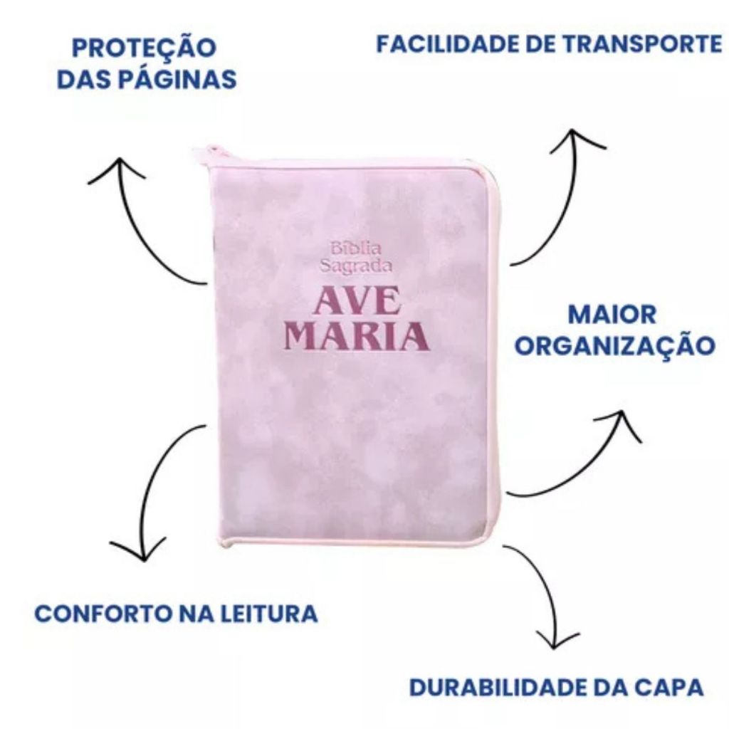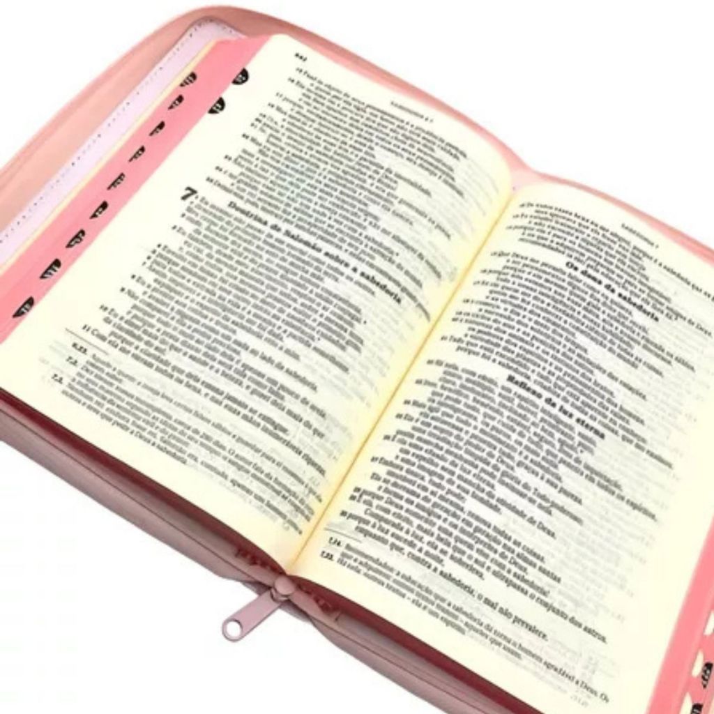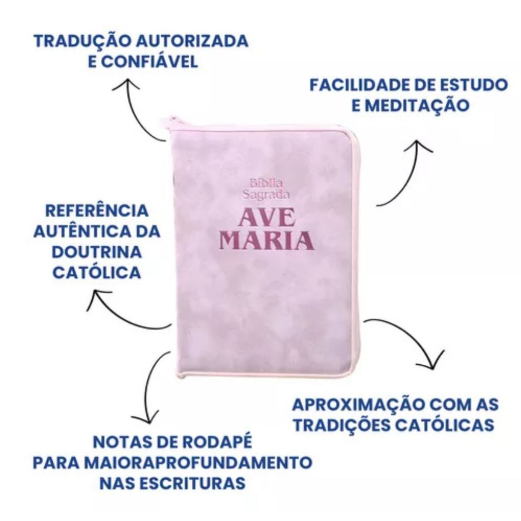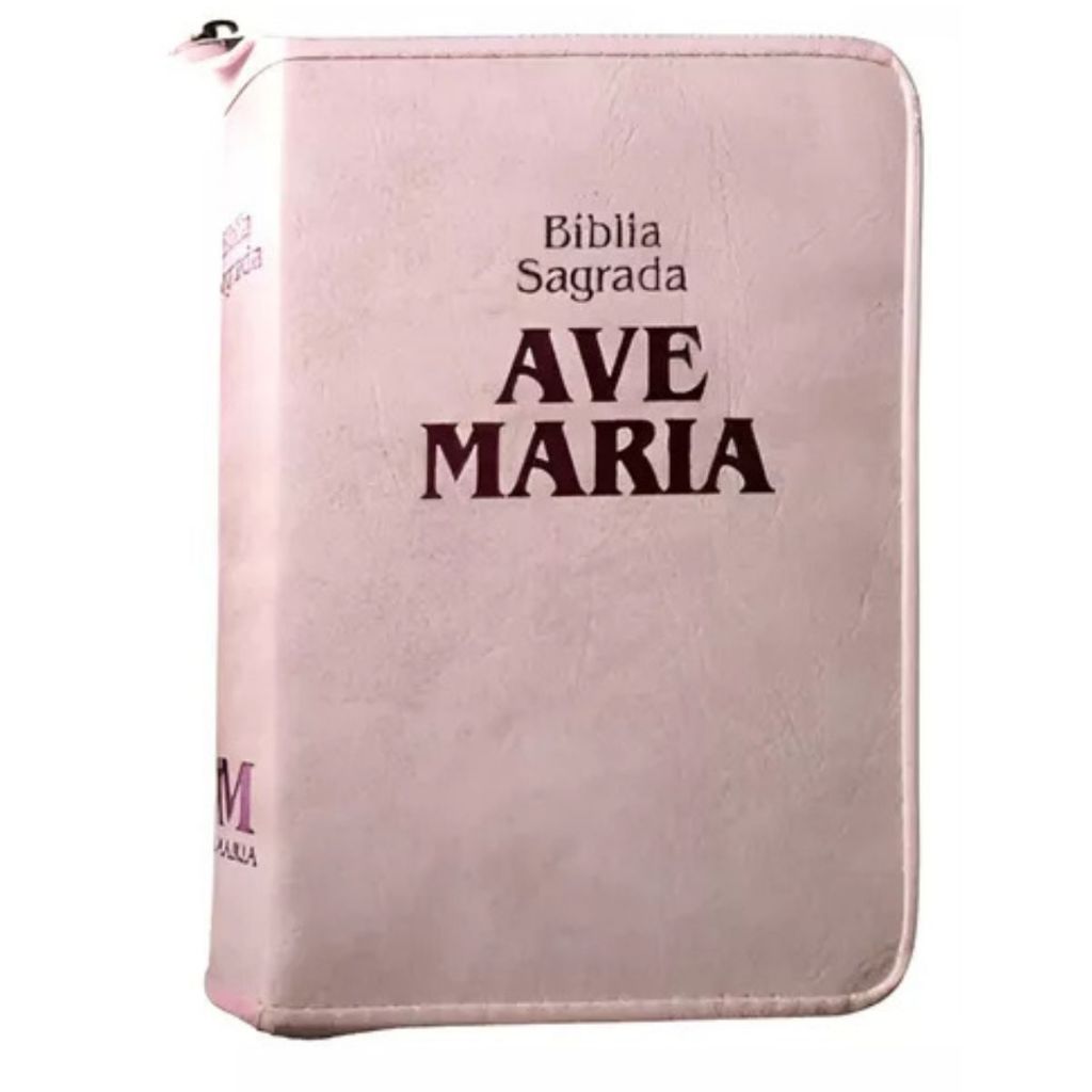 BIBLIA ZIPER ROSA EDITORA AVE MARIA CATÓLICA COM ZIPER TAMANHO MEDIO COMPLETA ANTIGO E NOVO TESTAM
