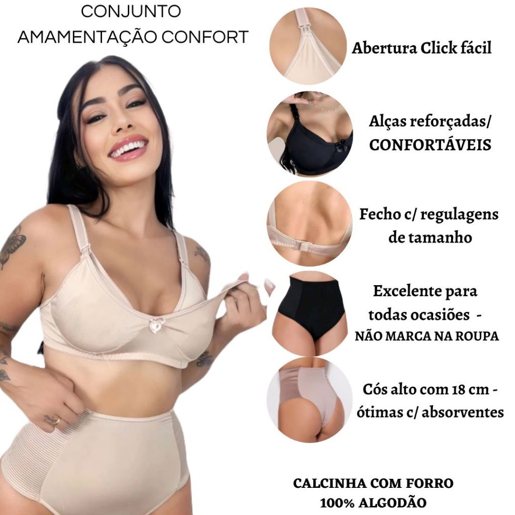 Kit 3 Conjuntos Amamentação Sutiã E Calcinha Gestante Pós Parto Fácil de Amamentar conforto cós alto