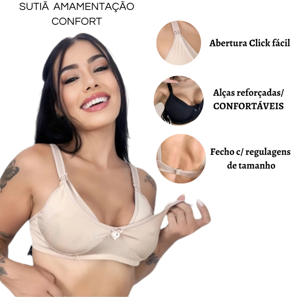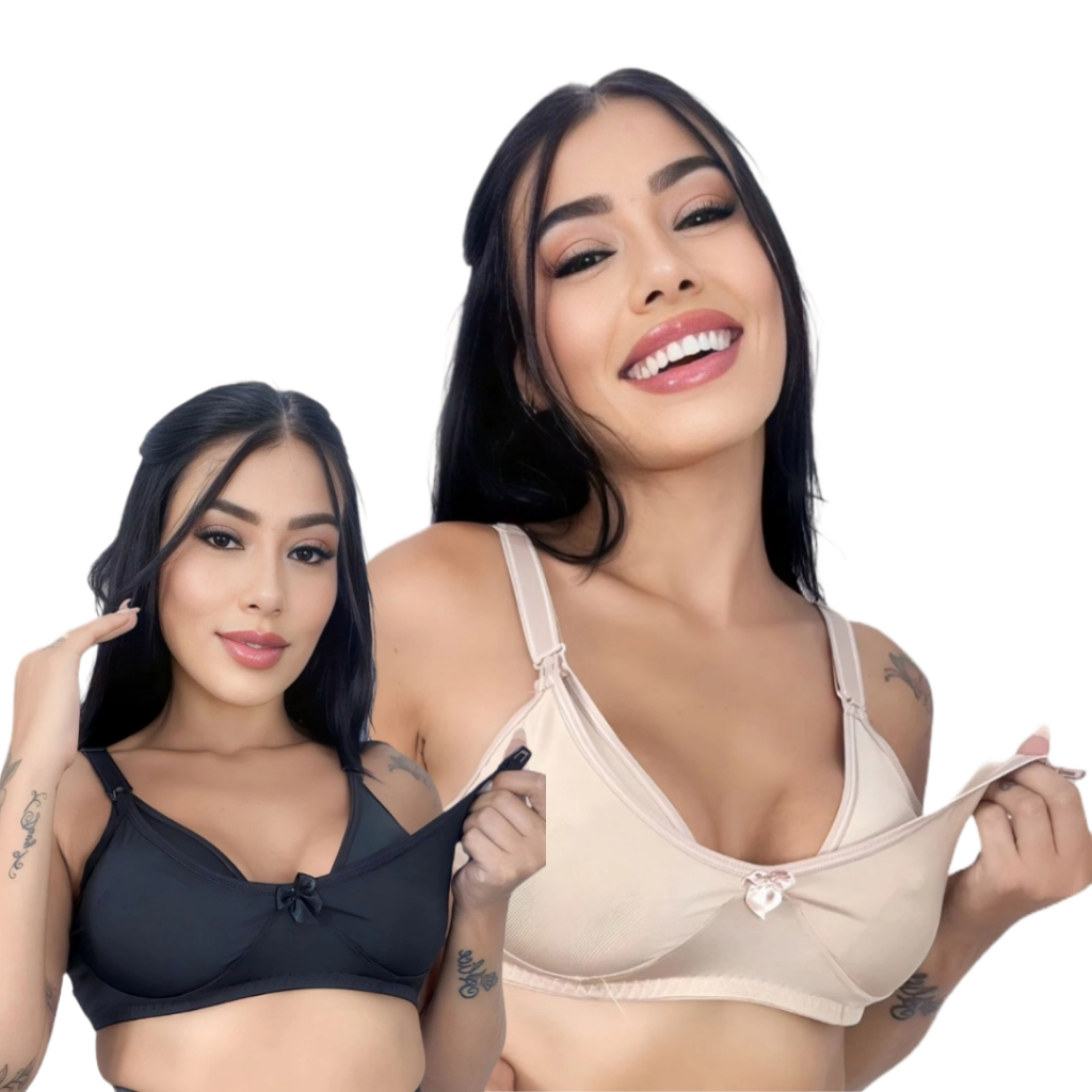 kit 3 Sutiã de Amamentação Básico Confortável Fecho Click Fácil Pós parto maternidade lactantes