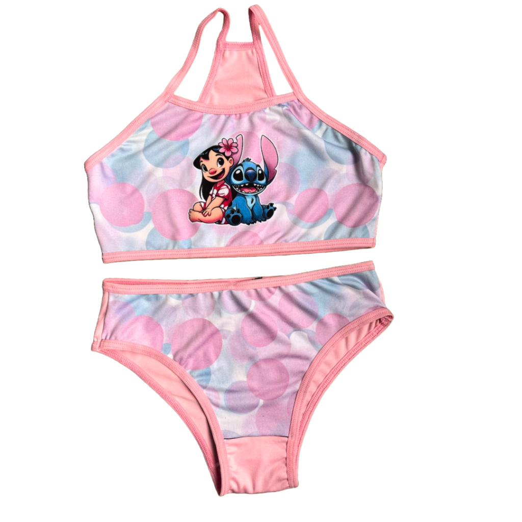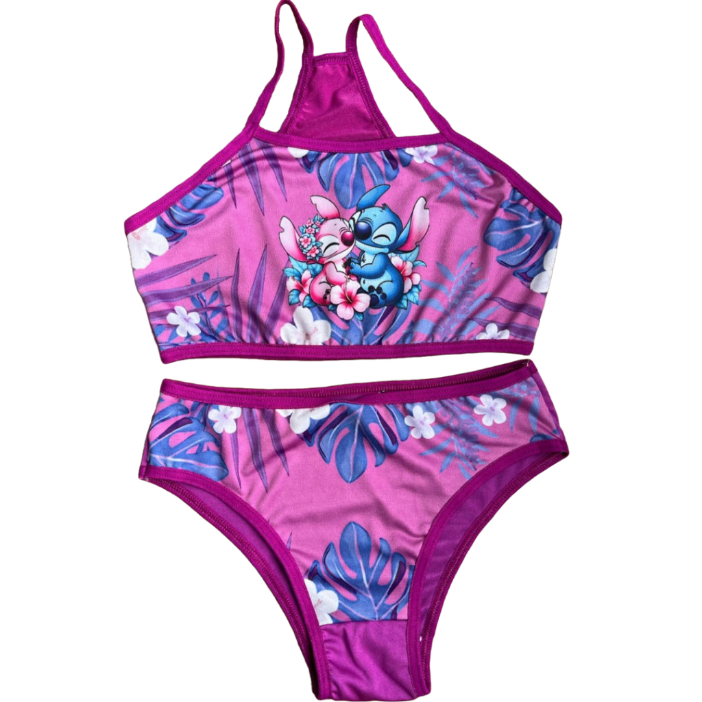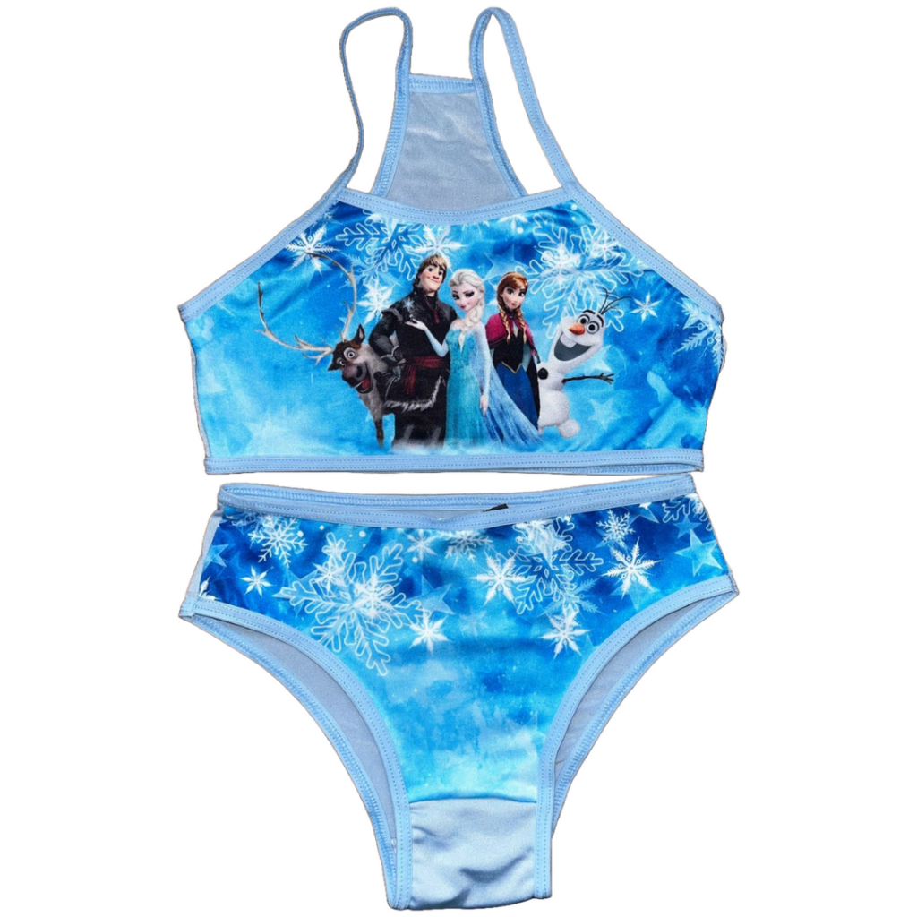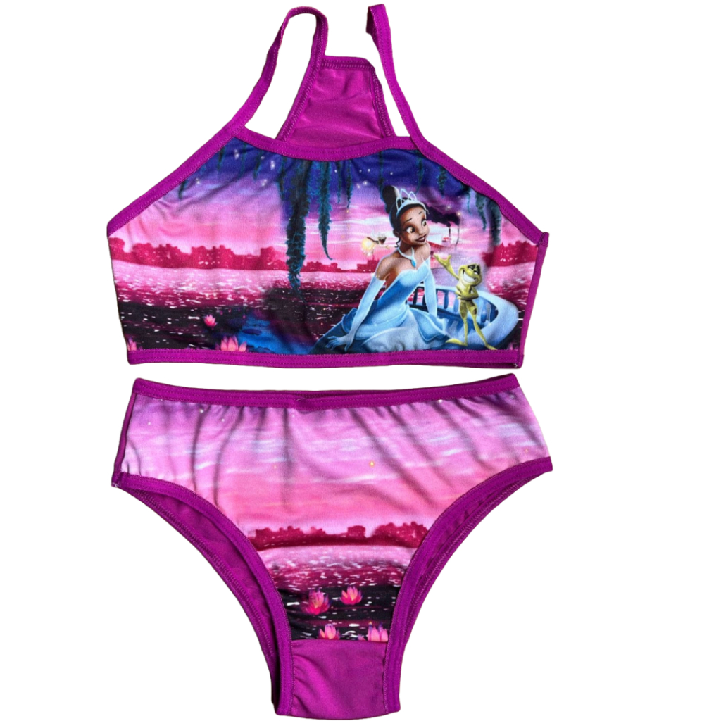 Conjunto Biquíni Infantil Moda Praia Sublimado Calcinha e Top Menina Desenhos Disney Princesas