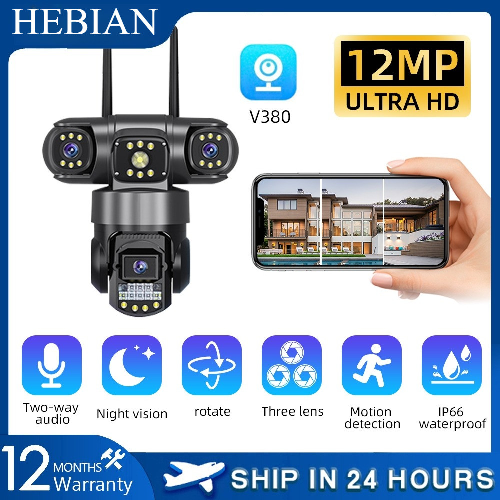 Câmera De Cartão SIM 4G Sem Fio HEBIAN V380 Pro Com Três Lentes , WIFI 6K 12MP , CCTV De Segurança IP Externa À Prova D'