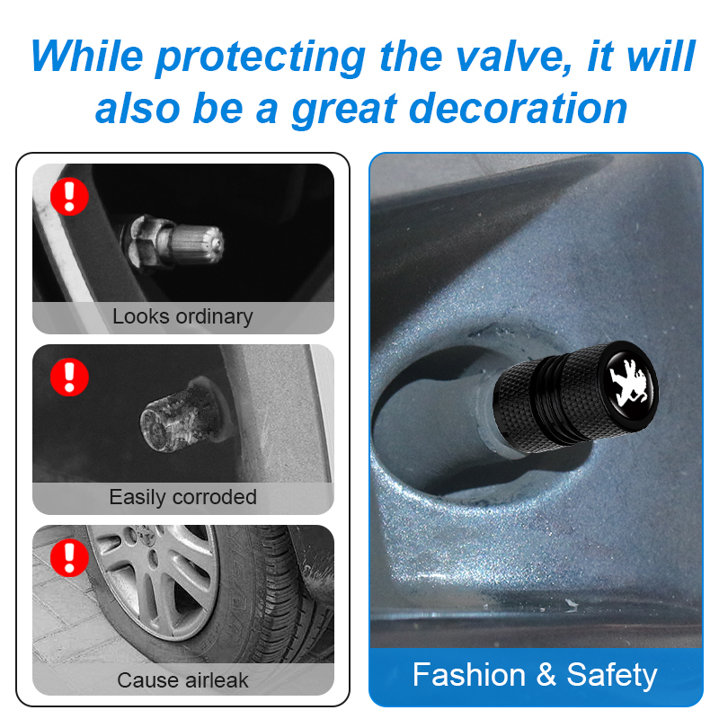 4pcs Tampa Roscada À Prova De Vazamentos De Pneus De Alumínio Para Carros Com O Logotipo Da Válvula Peugeot 308 206 207 408 508 RCZ 208 3008 2008 4008