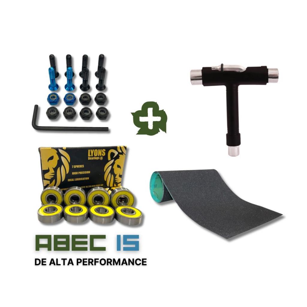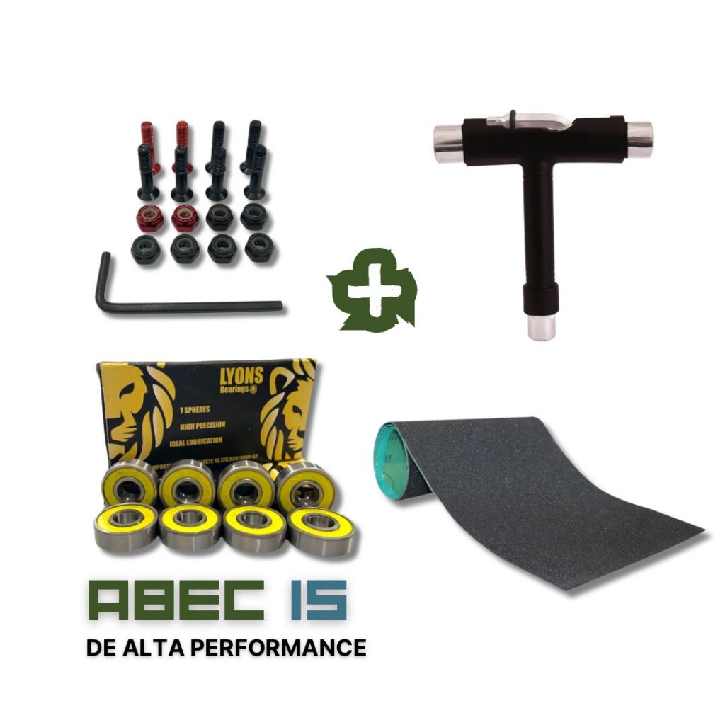 Kit Para Skate - Rolamento De Alta Performance + Chave T + Parafuso de Base Colorido + Lixa