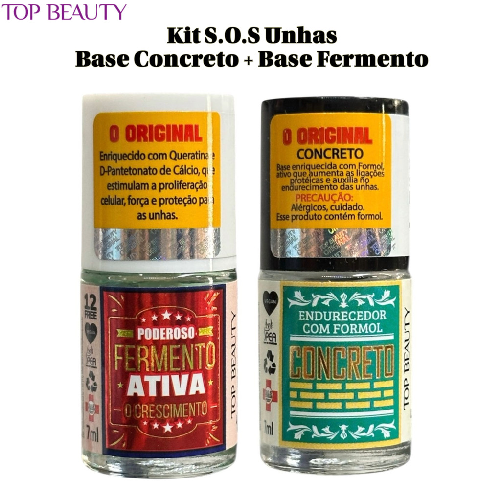 Kit S.O.S Unhas Manicure Base Concreto com Base Fermento Top Beauty para Cuidados