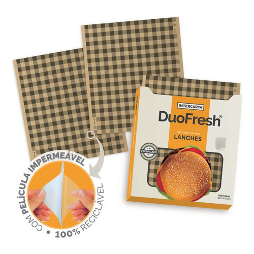 Papel Acoplado Duofresh Kraft 33x37cm 500un Para Delivery