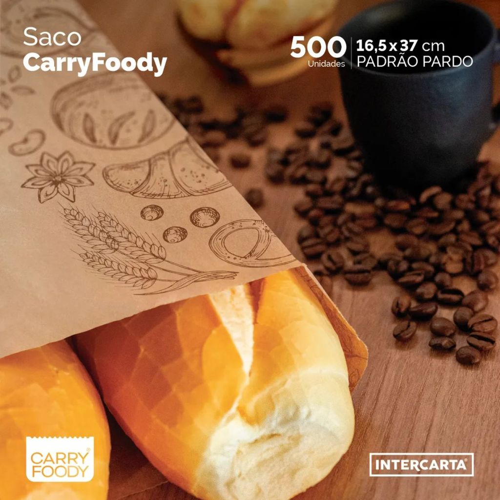 Saco Kraft Padaria 3kg Embalagem Papel 500un 16,5x37cm