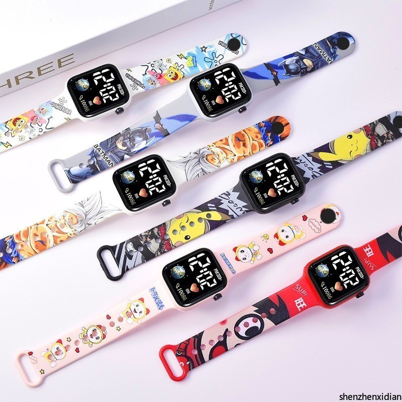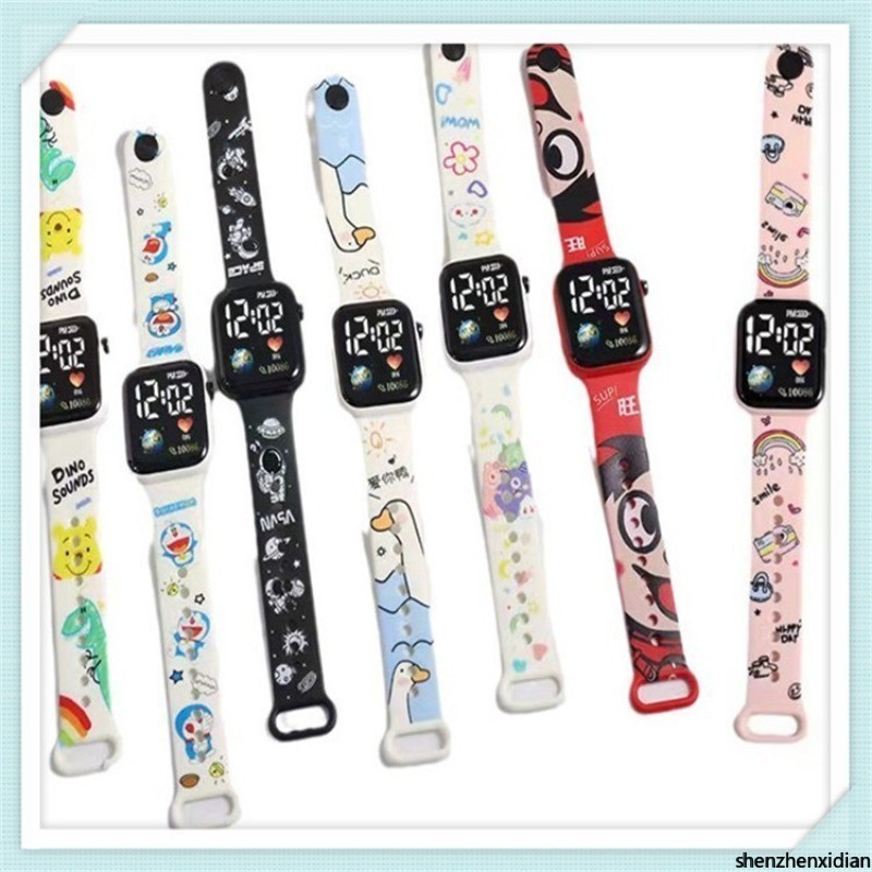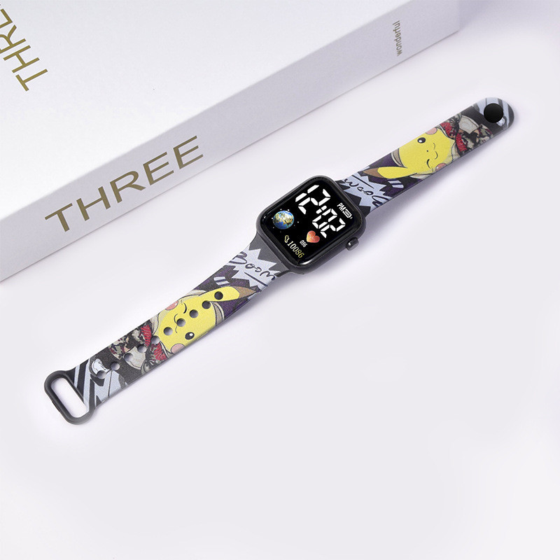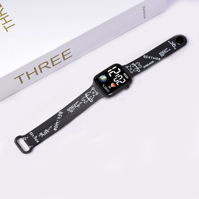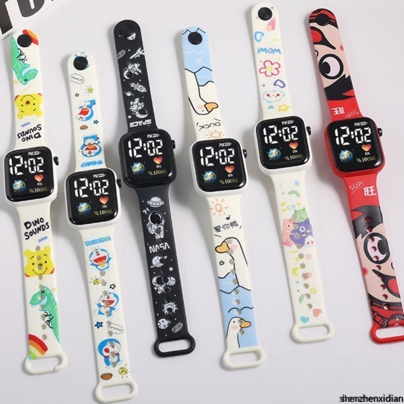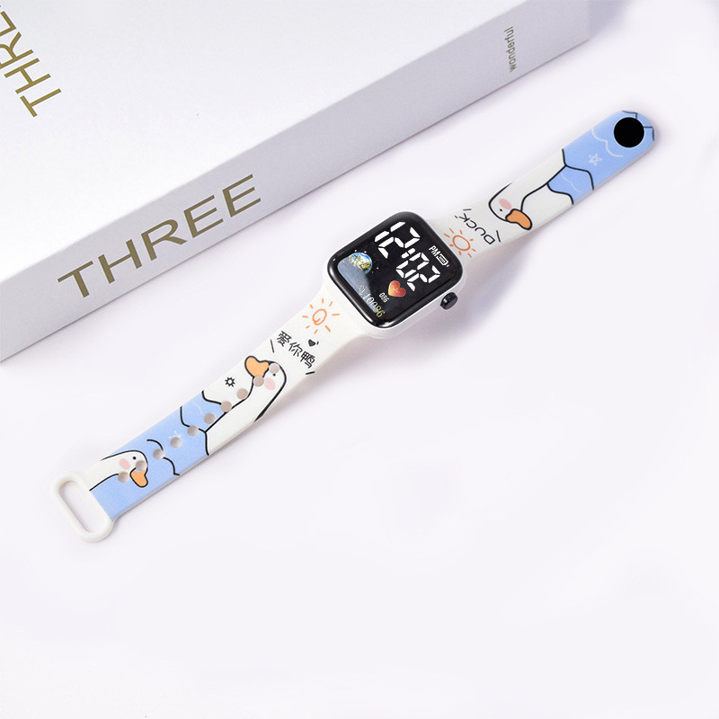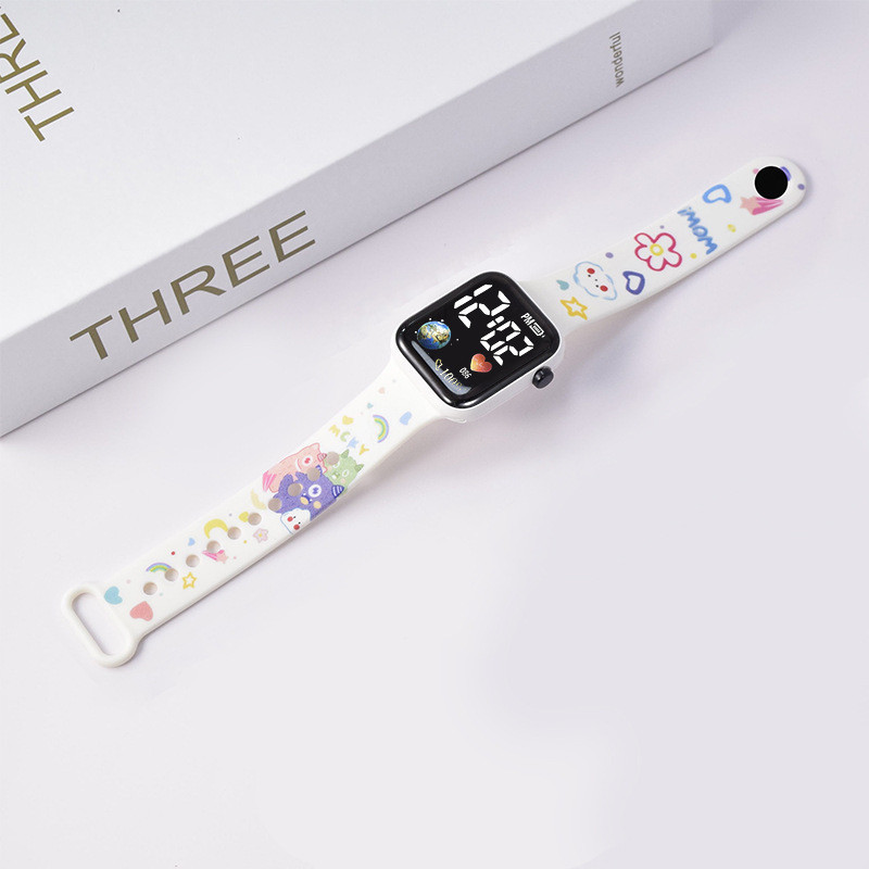 Hello Kitty Cartoon Impresso Botão LED Relógio Elétrico Adolescente Digital Personalidade Ponto Eletrônico Quadrado
