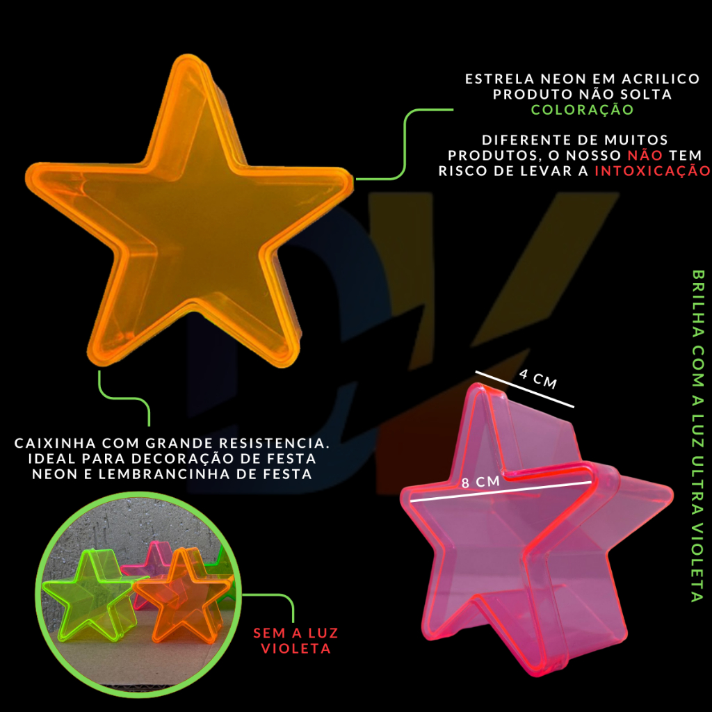 Kit 40 Estrelas Neon Para Lembrancinhas de Festa