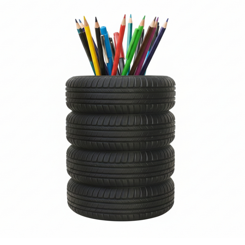 Porta-Lápis e Canetas em Formato de Pneus – Organizador de Mesa Criativo