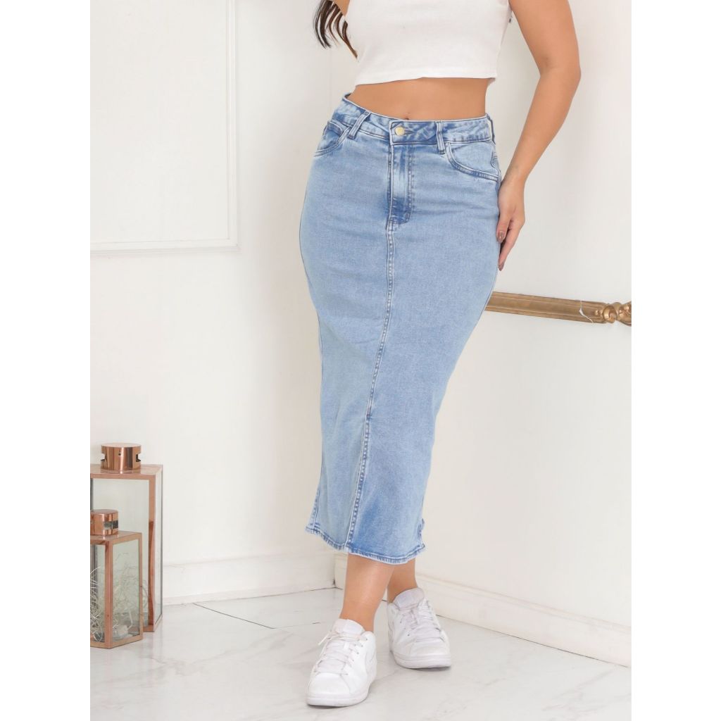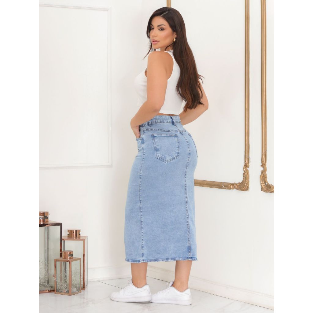 Saia Jeans Com Fenda Moda Evangélica Com Lycra