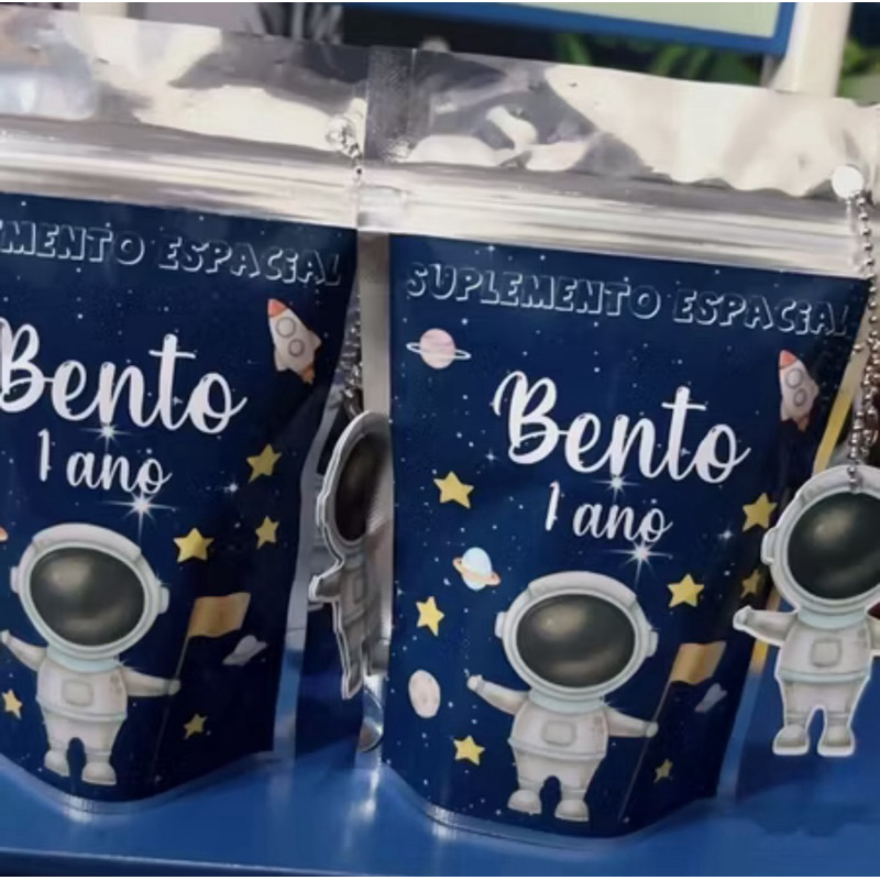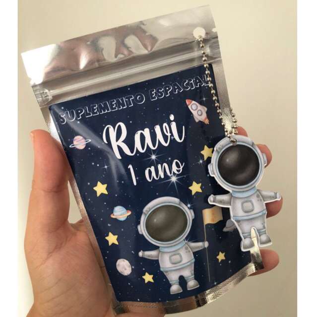 Saquinhos Metalizados Astronauta Aquarela - Lembrancinha