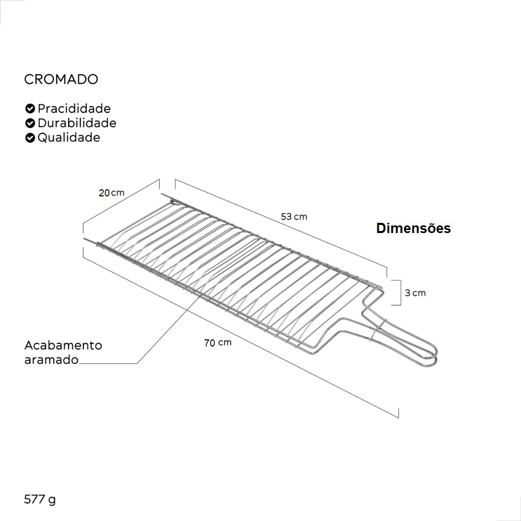 Grelha Dupla Abaulada 70 x 20 para Assar Peixe, frango churrasco