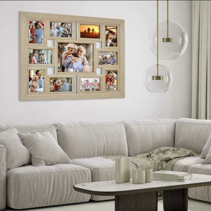 Painel Quadro Multifotos Grande Com Vidro Parede 11 Fotos