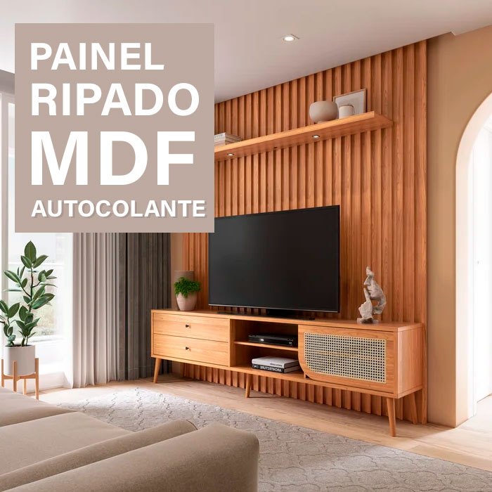 Kit Placa Painel De Parede Ripado em MDF Revestimento Autocolante - Com até 10 peças