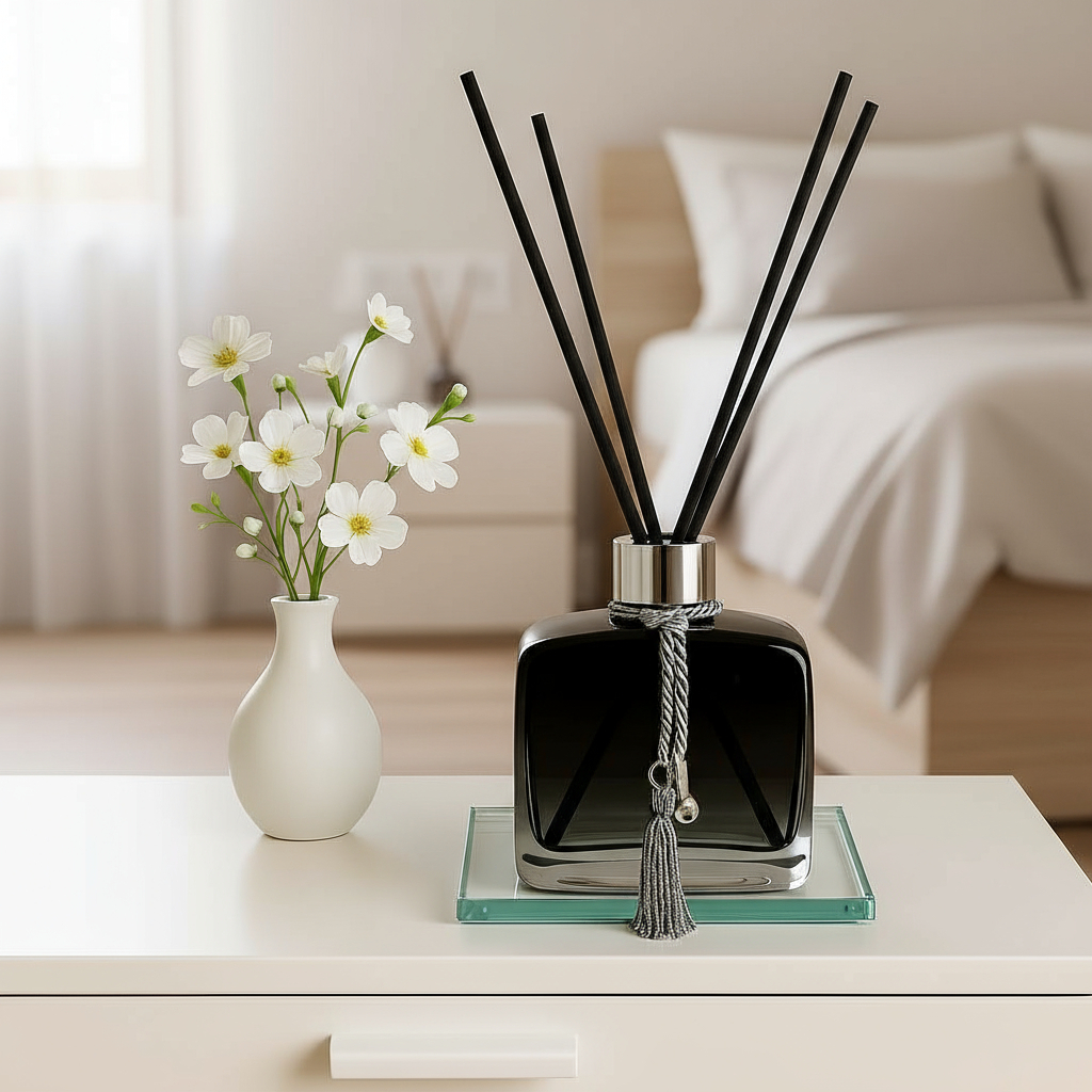 Kit Aromatizador De Ambiente Com Bandeja Decorativa Sala Banheiro Lavabo Quarto Perfume Luxo - Preto