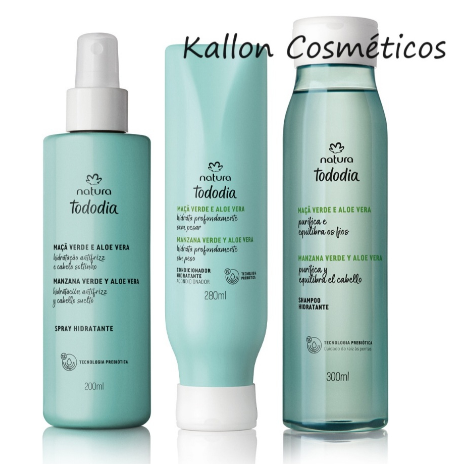 Linha Tododia Maça Verde e aloe vera, Natura Cosméticos, hidratação, Hidratante, Shampoo, Condicionador,Spray Hidratante