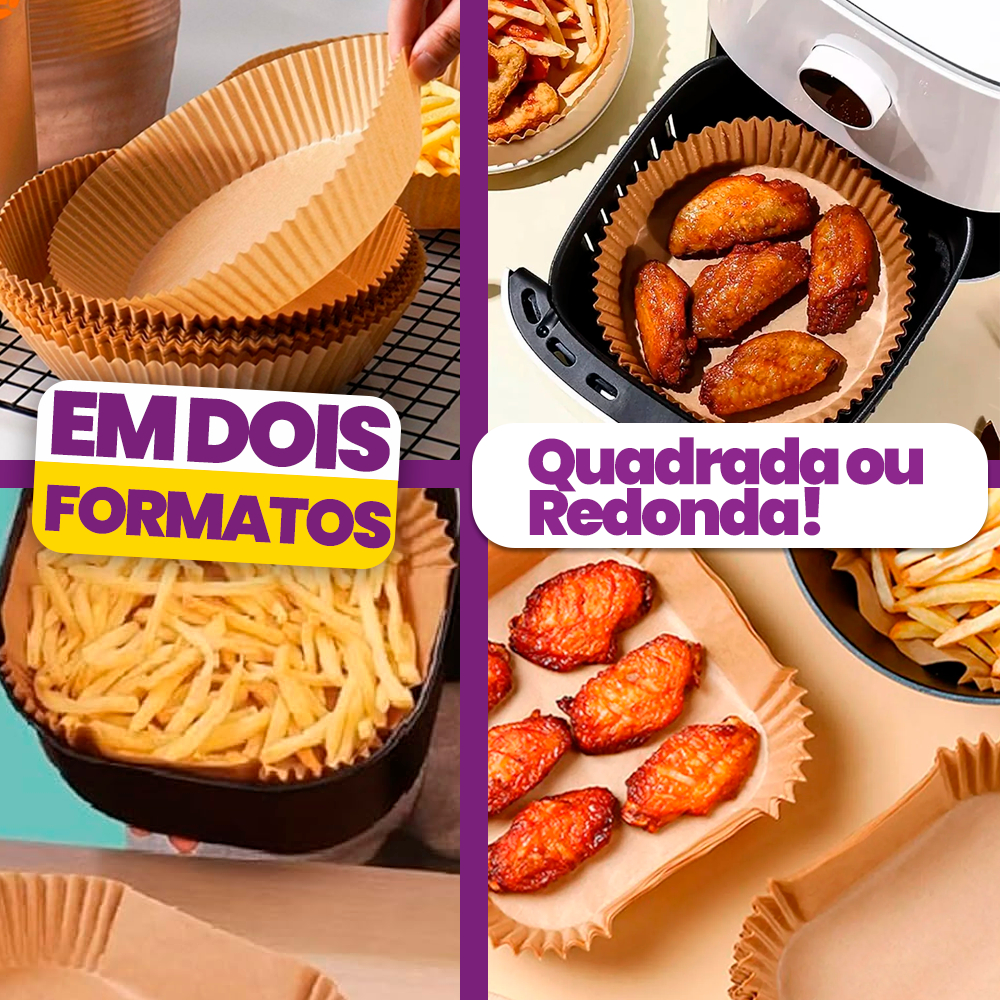 Kit Formas De Airf ryer Assadeira Papel Descartável Sem Sujeira Quadrado Redondo Antiaderente Papel