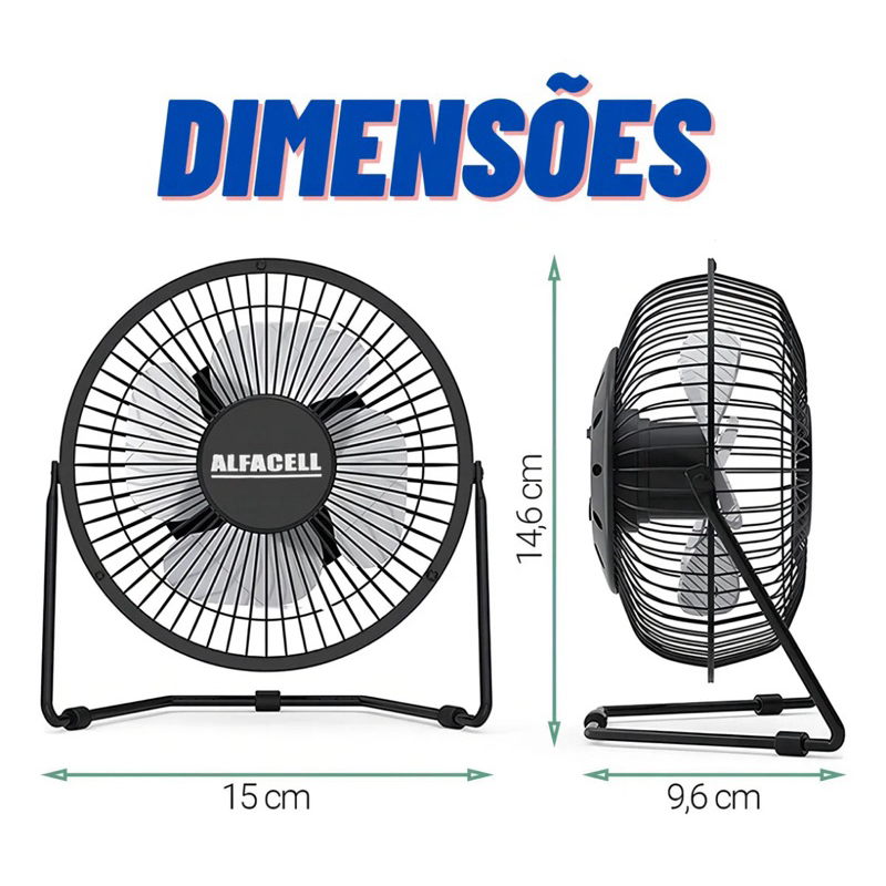Mini Ventilador Portátil USB para o Verão Vento Forte Silencioso 15CM Compacto 4 Pás ALFACELL