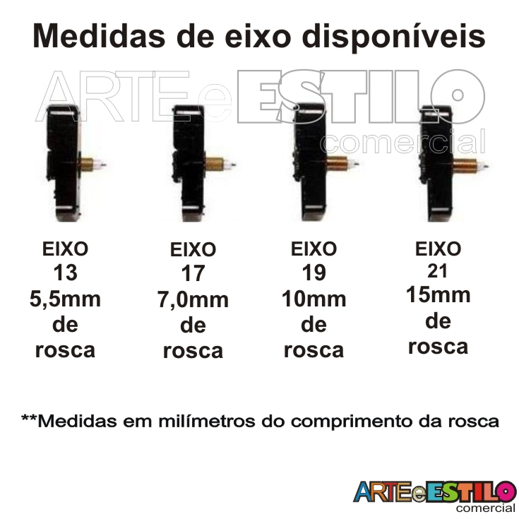 36 Maquinas De Relógio De Parede Quartz Eixos a escolher 13, 17, 19 e 21